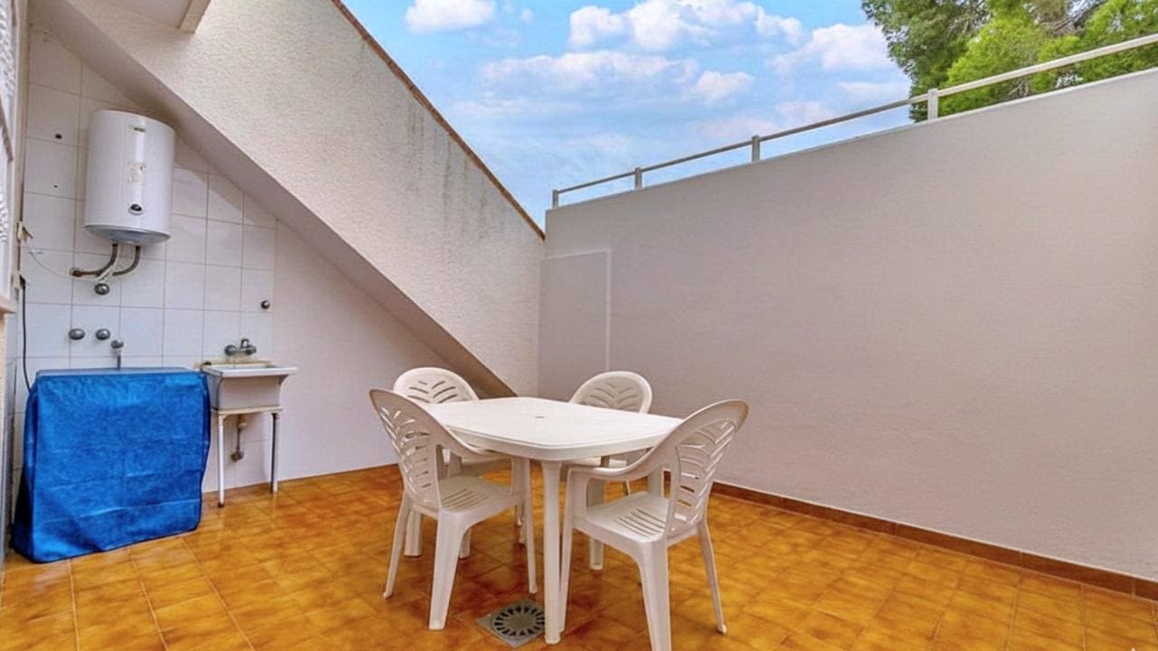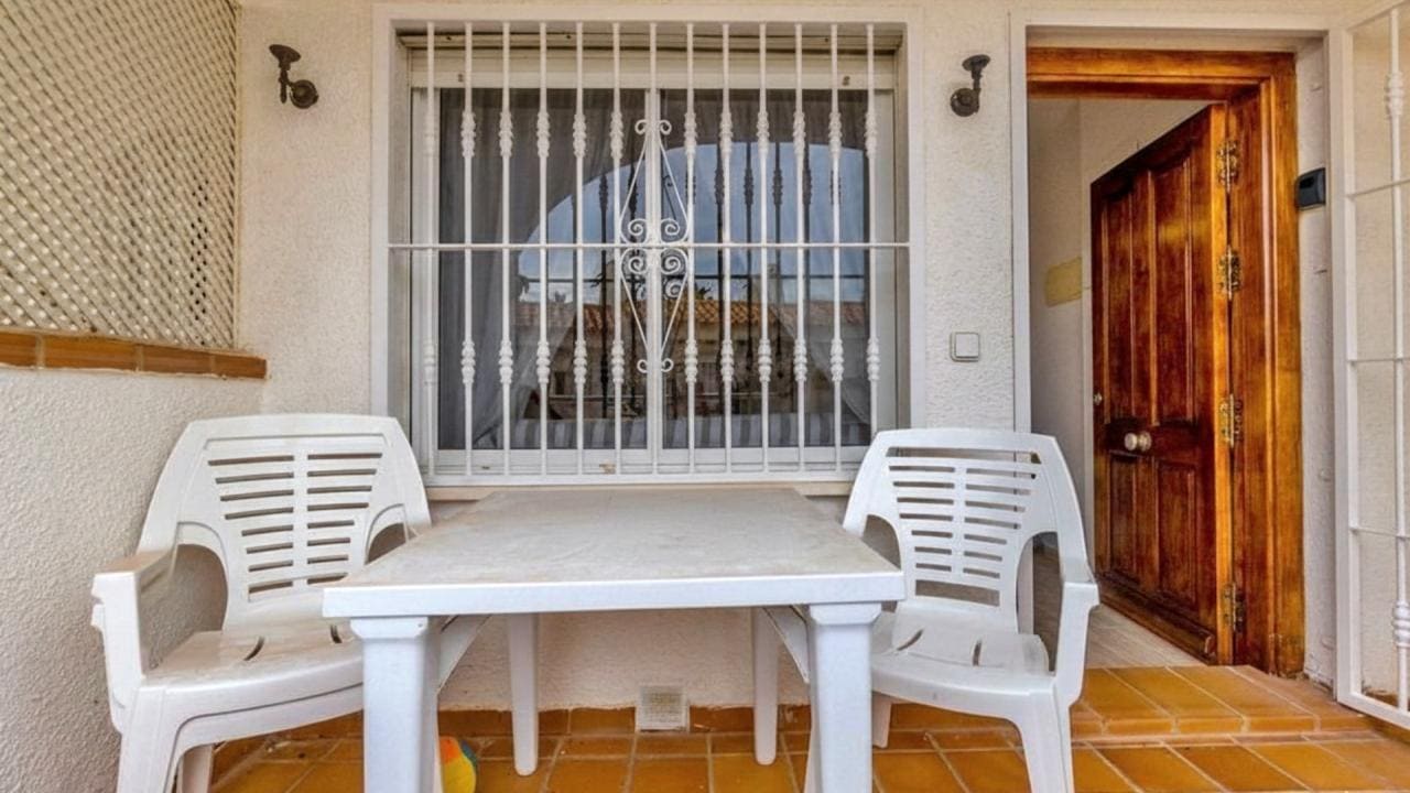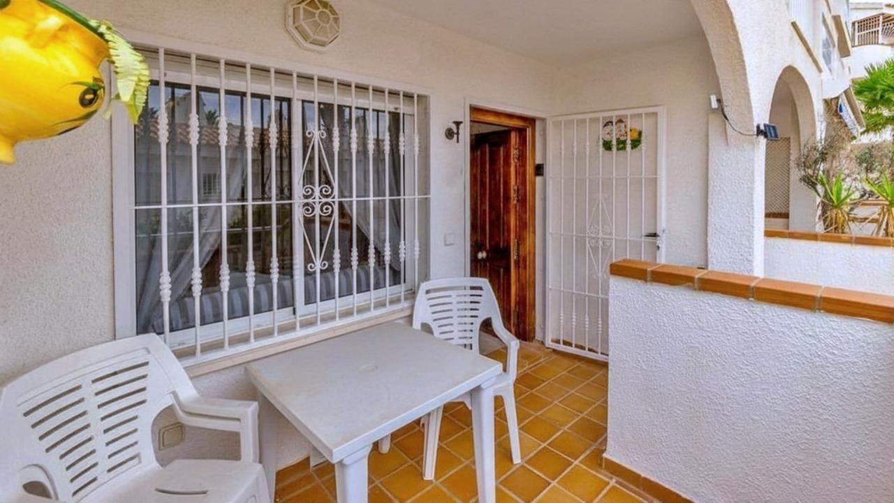 La distribución es funcional y eficiente, contando con un dormitorio doble y un baño completo. La propiedad destaca por sus espacios exteriores privados, que incluyen una terraza de 3 m² y un práctico patio interior de aproximadamente 8 m², perfectos para disfrutar del clima de la Costa Blanca durante todo el año.