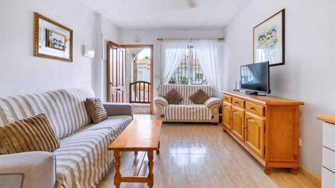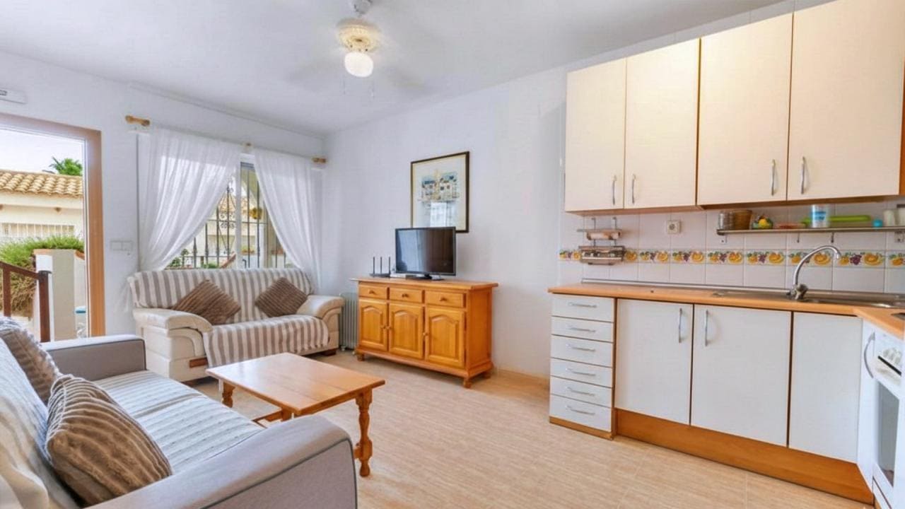 Presentamos este encantador apartamento tipo bungaló, ubicado en Dehesa de Campoamor (Orihuela Costa), dentro de un residencial en primera línea del mar. Esta ubicación privilegiada ofrece un entorno inigualable y acceso directo a la hermosa playa de Aguamarina. Esta vivienda de 53 m² está lista para entrar a vivir y es una oportunidad ideal para disfrutar del estilo de vida mediterráneo.