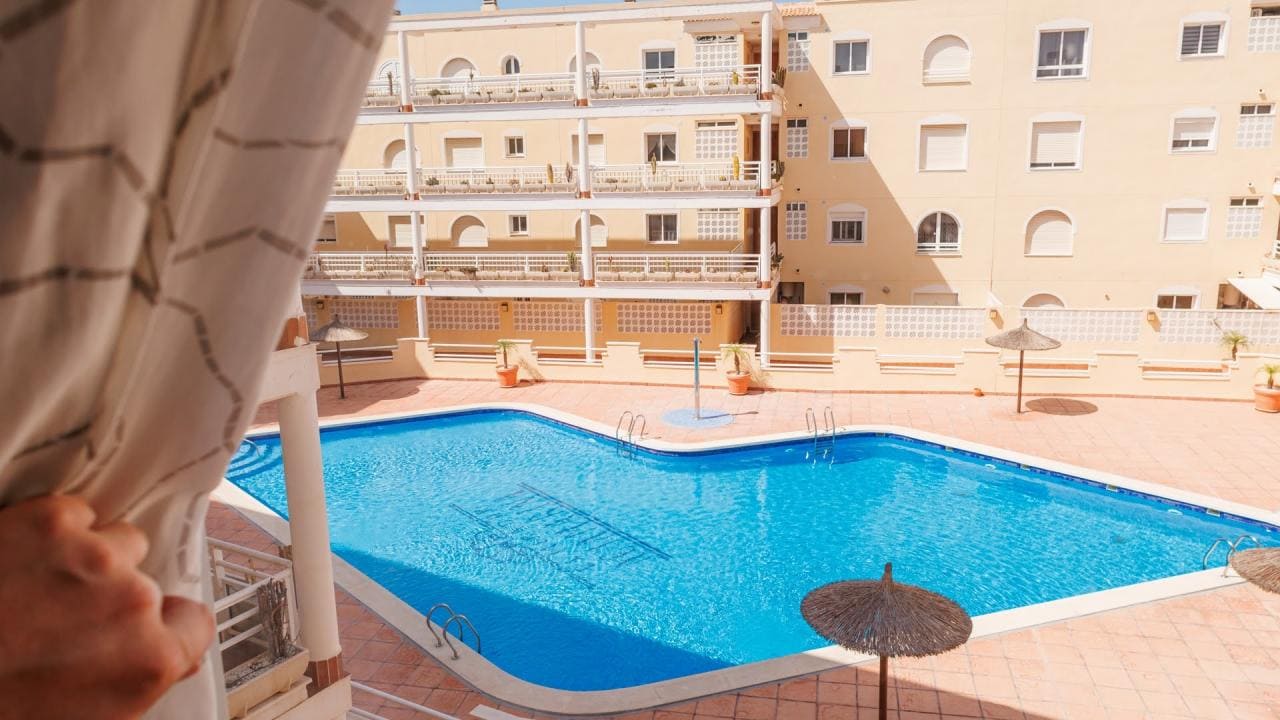 El complejo residencial cuenta con piscina comunitaria y aparcamiento subterráneo.