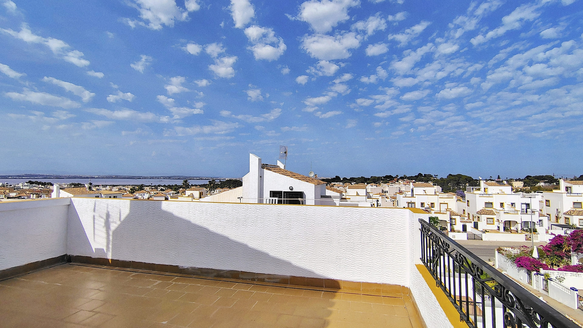 El amplio jardín que rodea la vivienda proporciona un espacio perfecto para relajarse, disfrutar de comidas al aire libre o pasar tiempo en familia. En la planta superior, el solárium privado se convierte en un auténtico mirador con vistas despejadas a la laguna, ofreciendo un rincón único para descansar bajo el sol o contemplar los atardeceres.