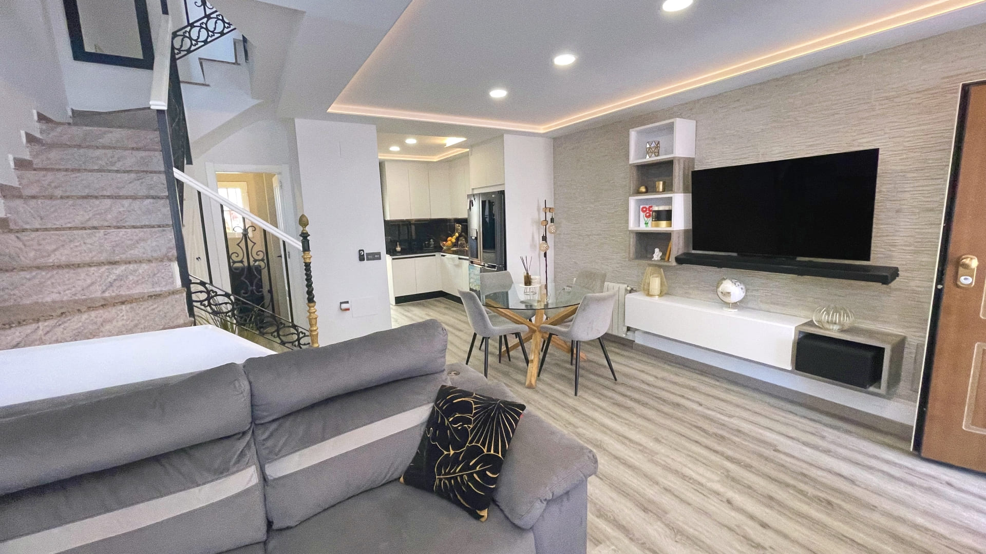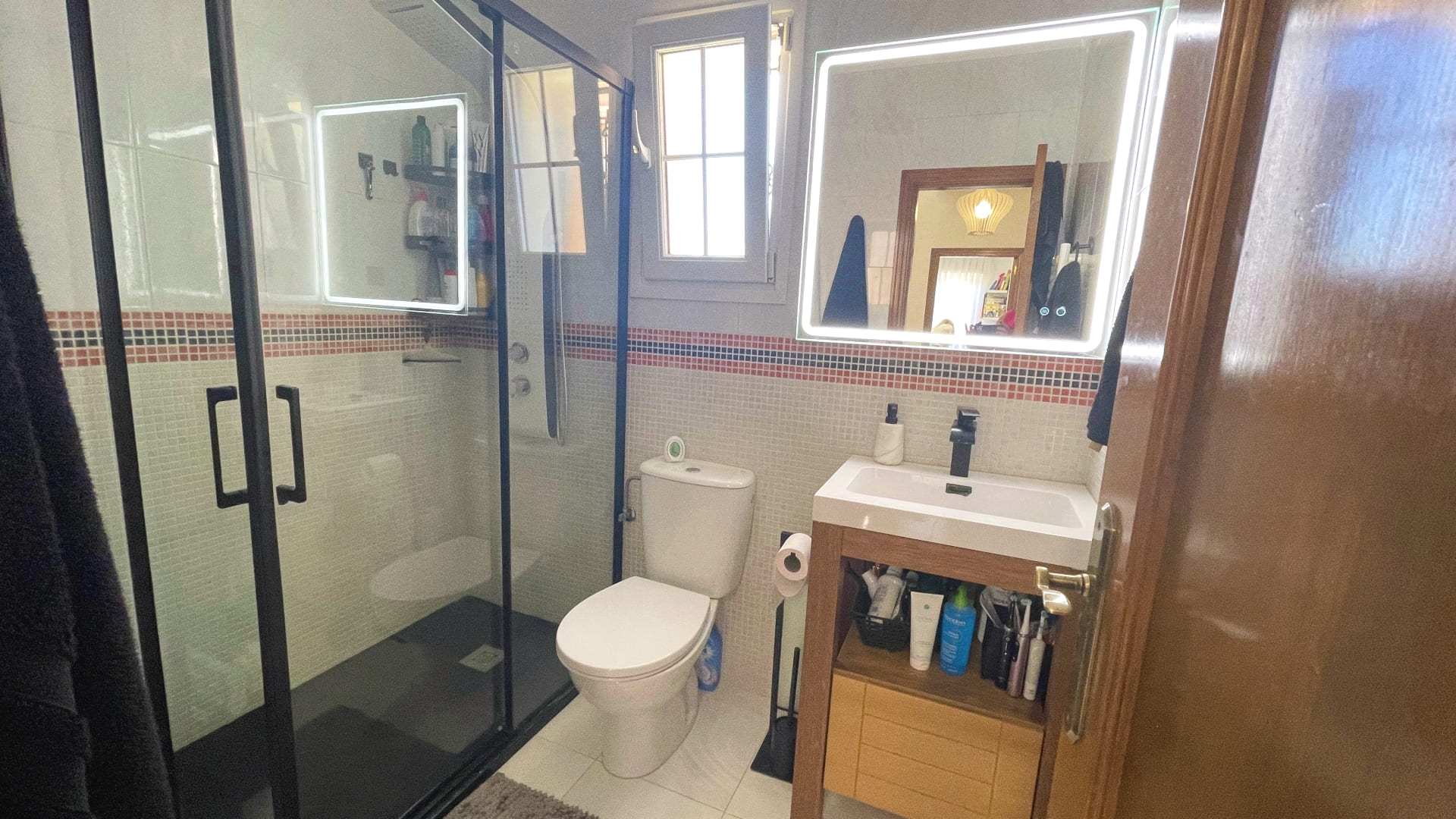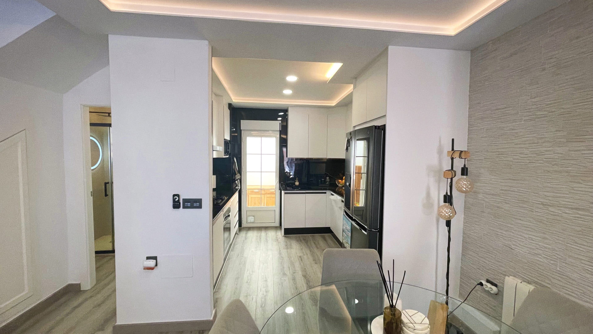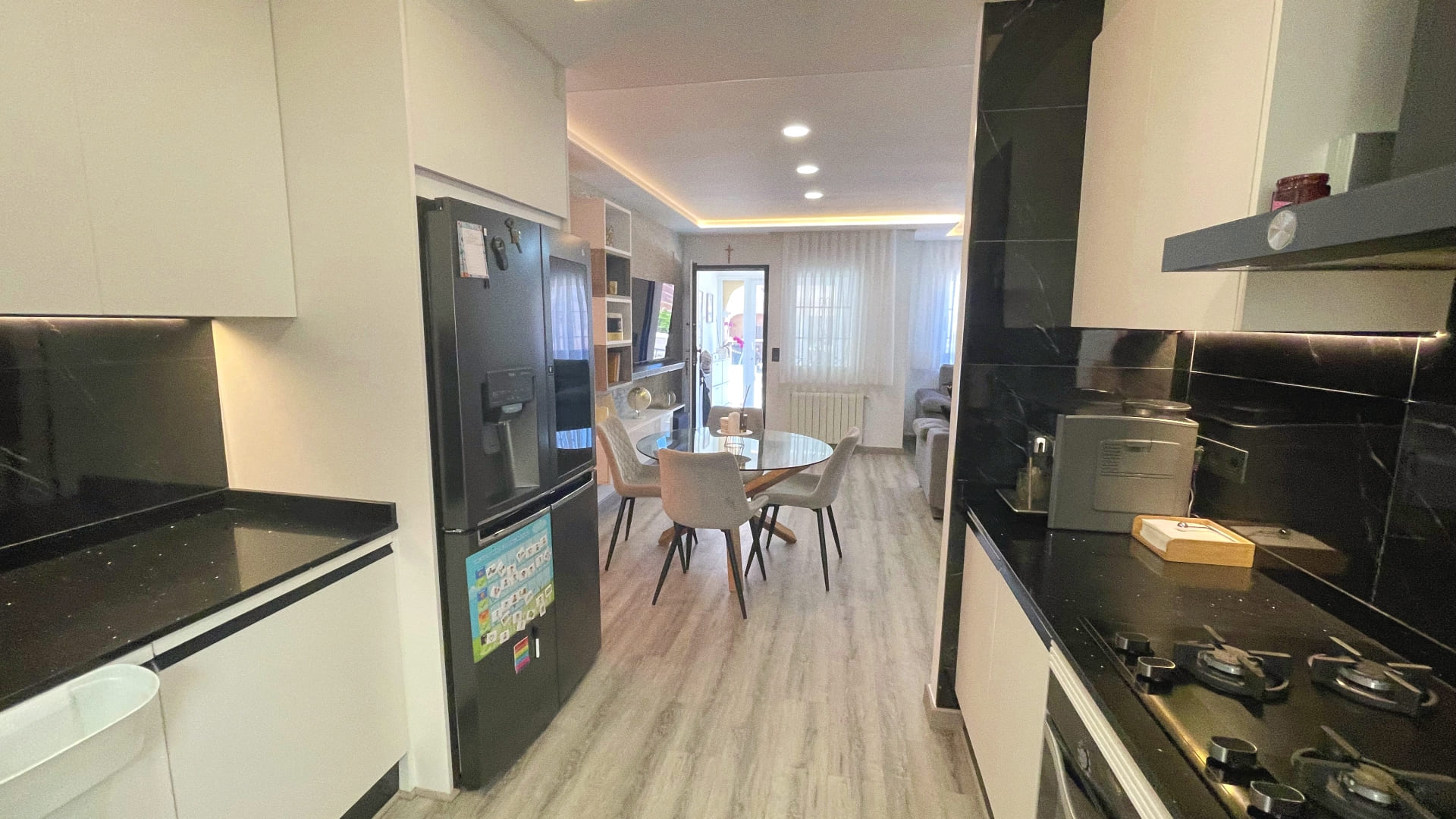 La vivienda ofrece una distribución práctica y acogedora, con espacios amplios y llenos de luz natural. El salón se integra perfectamente con la cocina abierta, creando un ambiente ideal para compartir momentos en familia o con amigos. Dispone de tres dormitorios bien distribuidos y dos baños que aseguran confort e independencia para todos los miembros del hogar.