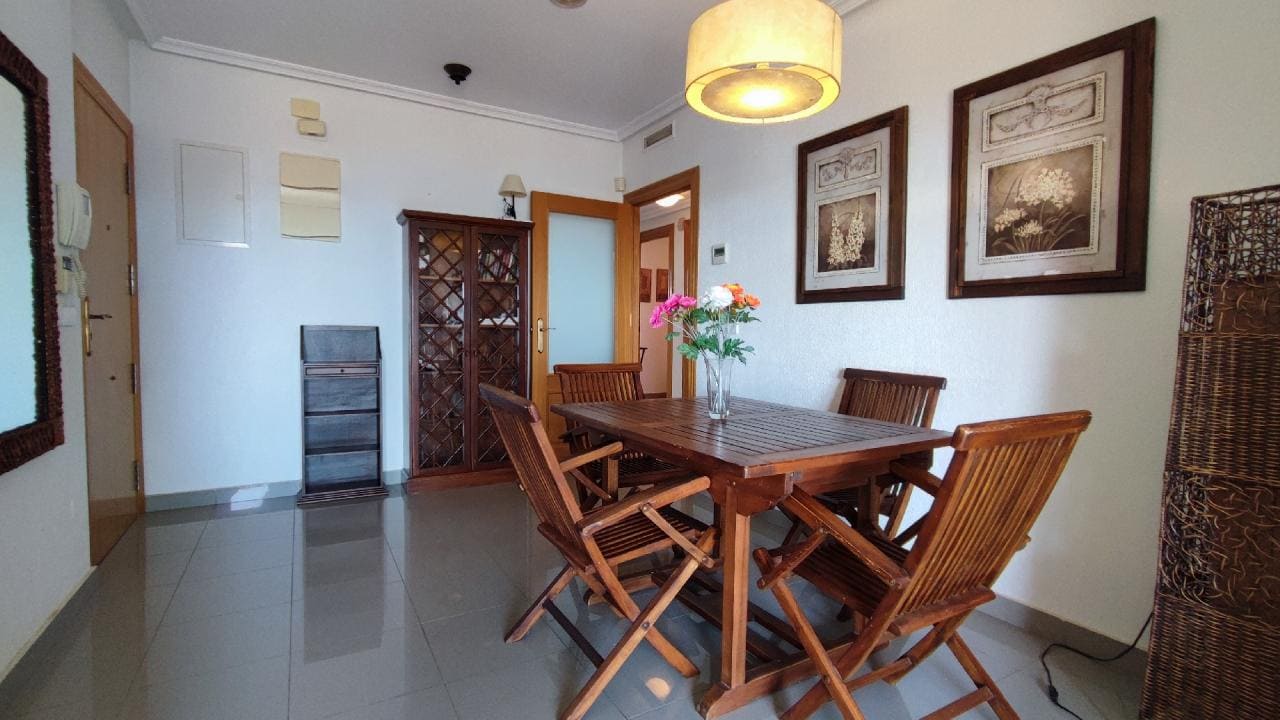 La propiedad dispone de 3 amplios dormitorios, 2 baños, un amplio salón con acceso a una gran terraza con bonitas vistas al mar, una gran cocina independiente con lavadero. El apartamento está totalmente amueblado y equipado con electrodomésticos. El complejo residencial dispone de plaza de aparcamiento en garaje subterráneo.