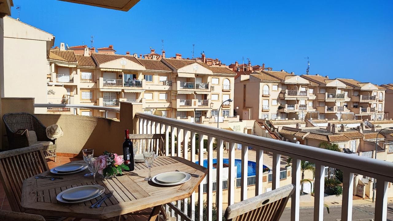 El apartamento pertenece a un conjunto residencial cerrado en segunda línea de mar. El complejo dispone de dos piscinas con cascada, una de las piscinas para niños, zona de recreo con tumbonas y zona de barbacoa. Cerca del complejo hay supermercado, centro de salud, farmacia, bares, restaurantes, cafeterías, tiendas. No muy lejos del complejo se encuentra el popular centro comercial Zenia Boulevard.