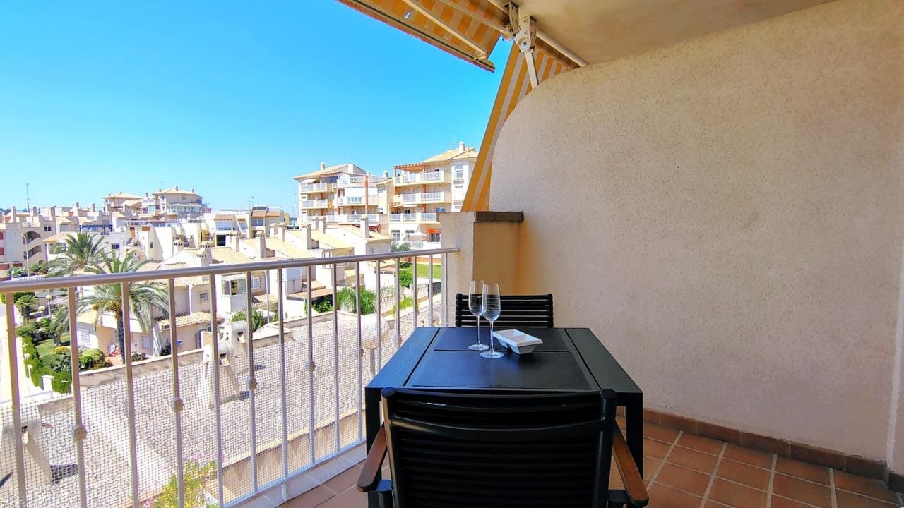 El residencial Las Terrazas de Aguamarina está pensado para garantizar una estancia cómoda y sin preocupaciones. Cuenta con piscina comunitaria para disfrutar de los días cálidos, conexión WiFi y zona de aparcamiento dentro del propio complejo. La zona circundante ofrece, además, una amplia variedad de restaurantes, tiendas, supermercados y una conexión rápida con otros destinos turísticos populares como Cabo Roig, La Zenia y Torrevieja.