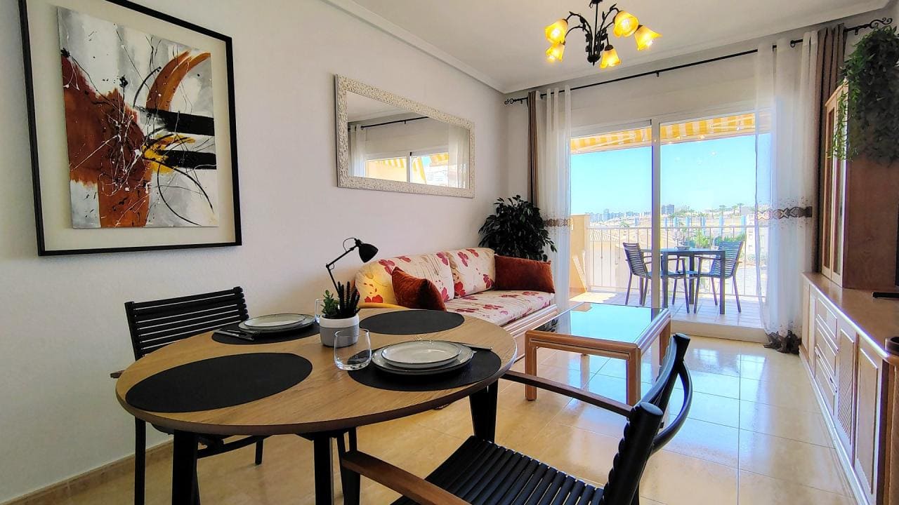 Descubre este fantástico apartamento ubicado en la exclusiva urbanización Las Terrazas de Aguamarina, en Campoamor. La vivienda ofrece una oportunidad única para disfrutar del auténtico estilo de vida mediterráneo en una ubicación privilegiada, a tan solo 250 metros de las espectaculares playas de Aguamarina y La Glea. Este entorno garantiza tranquilidad, mar y todos los servicios necesarios al alcance de la mano.