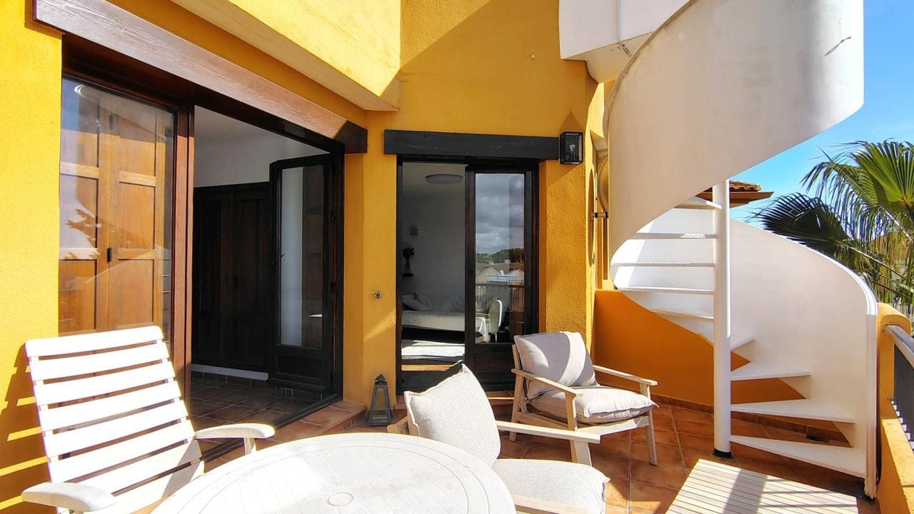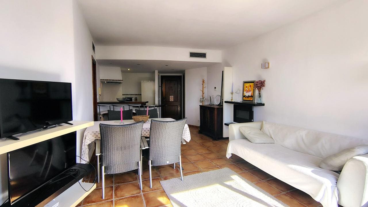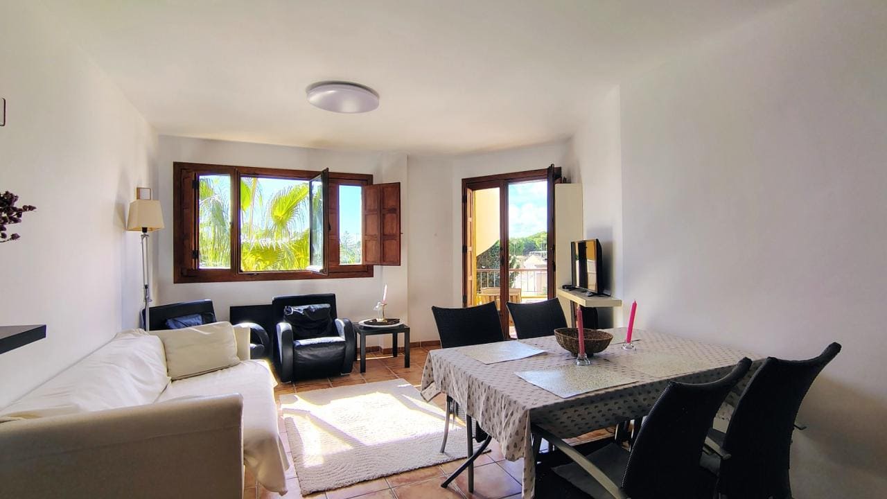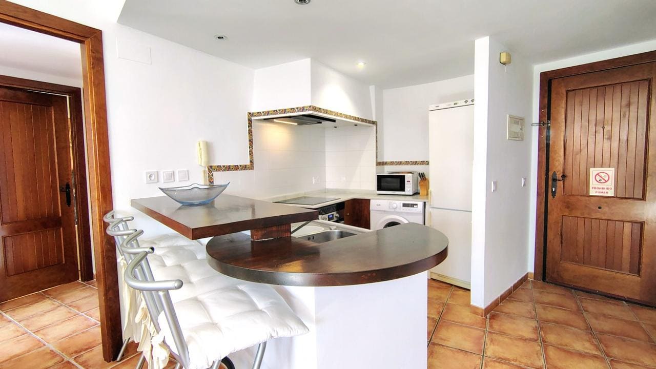 La vivienda ofrece dos amplios dormitorios, un baño completo, cocina totalmente equipada con electrodomésticos nuevos y un luminoso salón-comedor con acceso a una terraza privada con espectaculares vistas al Mediterráneo, desde donde podrás contemplar el amanecer y el atardecer. Además, dispone de solárium privado y plaza de parking incluida.