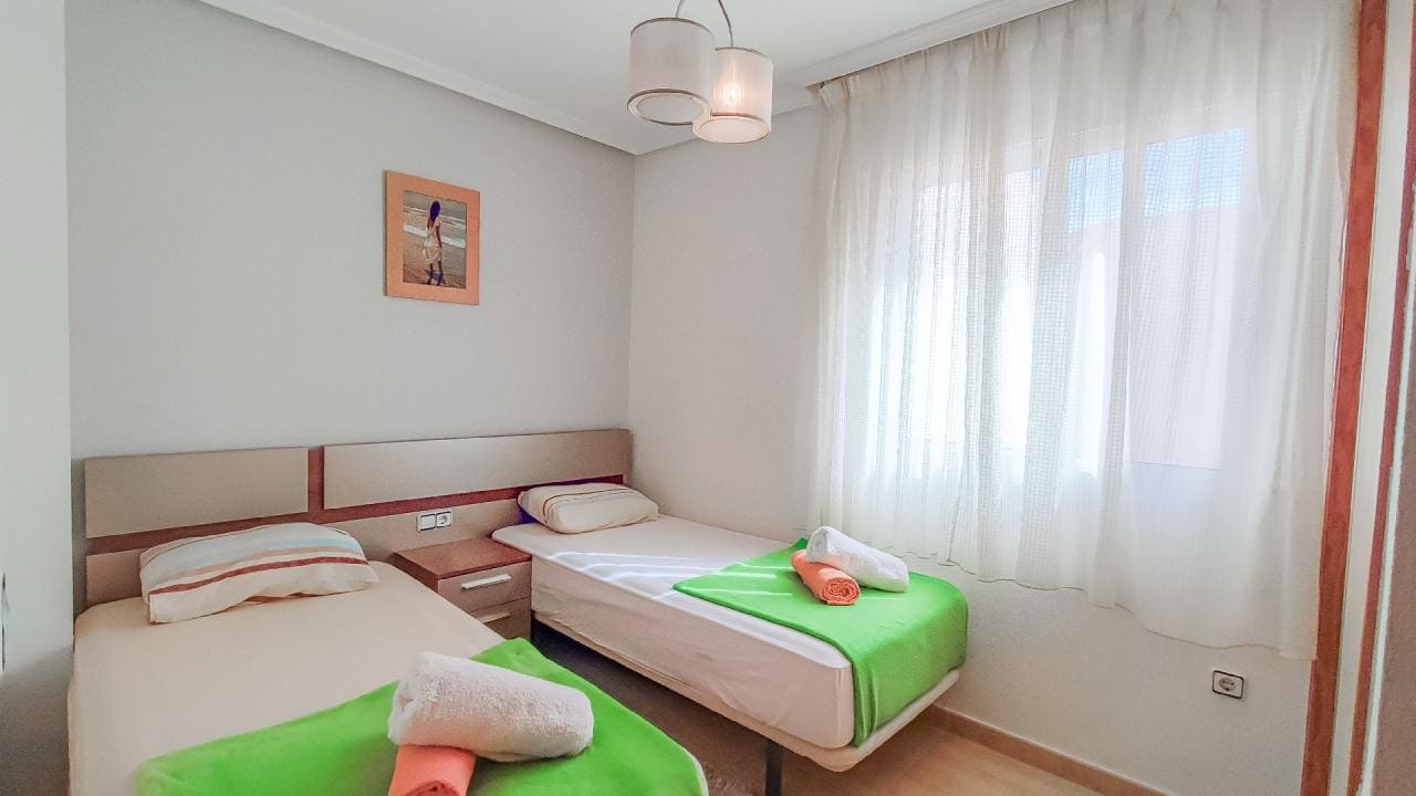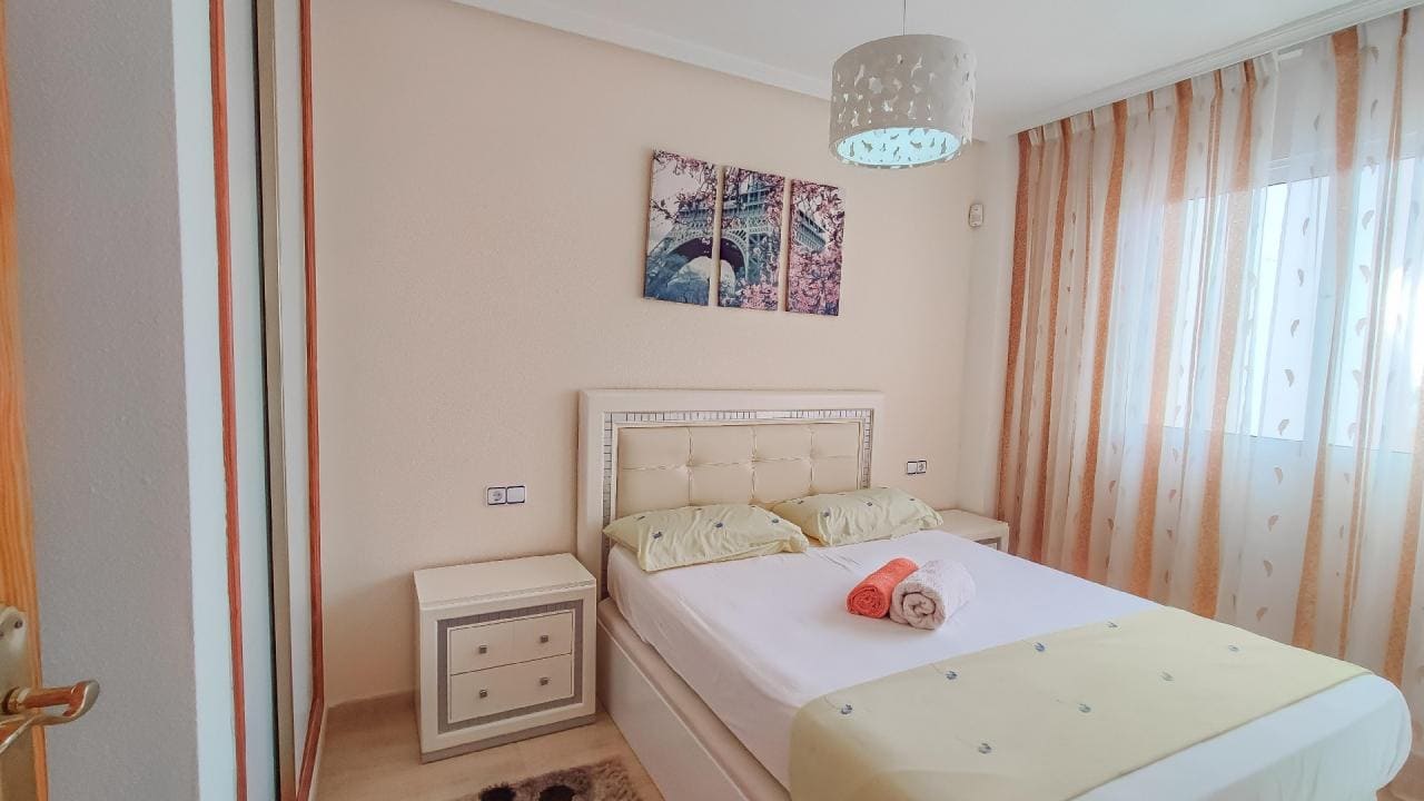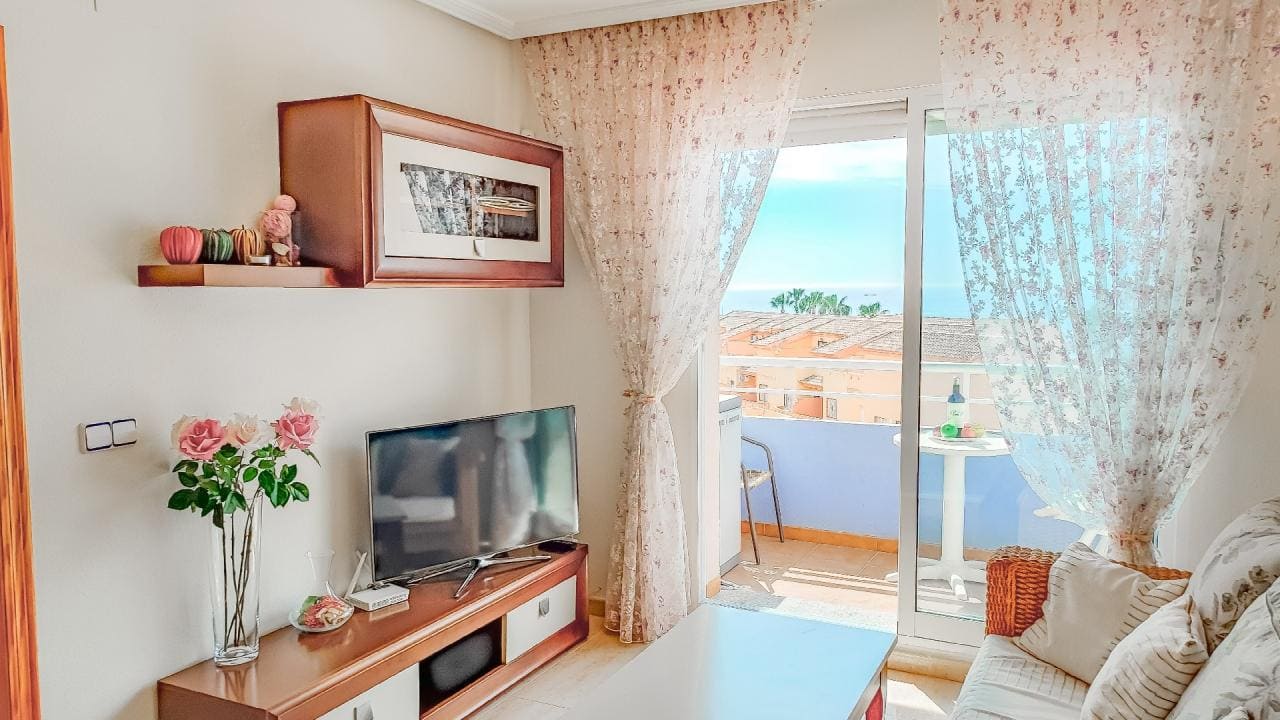 El apartamento pertenece a un complejo residencial que incluye una gran piscina y zona común. El complejo se encuentra a solo 300 metros de la playa de arena de Cabo Roig ya 100 metros de una hermosa zona peatonal con bares, restaurantes, tiendas y parques infantiles.