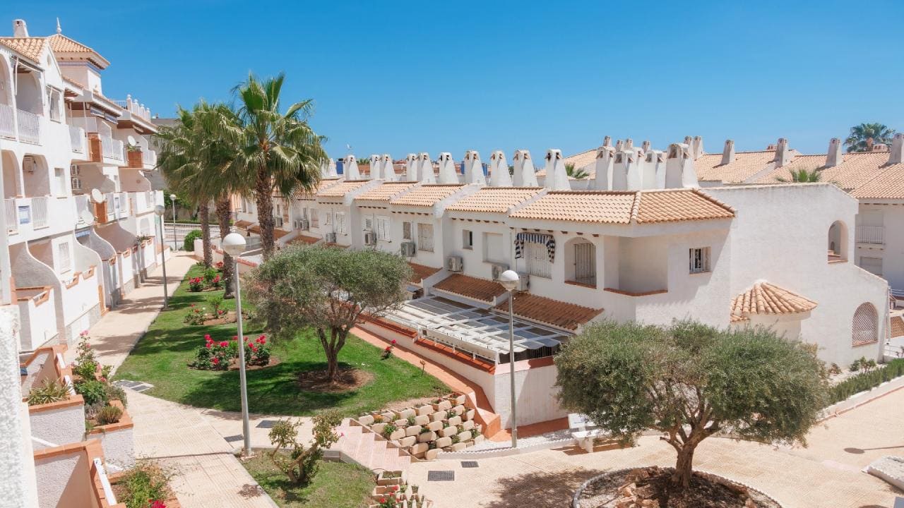 Este hermoso apartamento-bungalow se encuentra en el popular complejo residencial «Aguamarina», una de las zonas más solicitadas de Dehesa de Campoamor, en la costa sur de Alicante. El complejo ofrece a sus residentes una gran piscina y amplios jardines, proporcionando un entorno ideal para el descanso. Su ubicación es de primer nivel, situándose a solo 150 metros de la playa de arena Glea y de una hermosa zona de paseo marítimo.