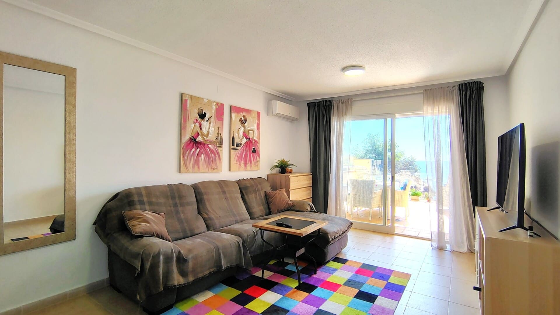 Este moderno y luminoso apartamento está ubicado en la primera línea del mar, dentro del exclusivo residencial privado Terrazas de Aguamarina, en Dehesa de Campoamor. Es una vivienda pensada para quienes buscan una estancia tranquila junto al mar en un entorno ideal para familias. El residencial es muy cuidado y ofrece una ubicación privilegiada con acceso directo al paseo marítimo y a las calas de aguas cristalinas de la zona. La propiedad destaca por sus amplios y confortables espacios. Dispone de 3 dormitorios dobles y 2 baños completos, garantizando comodidad para todos los ocupantes. Cuenta con una cocina independiente totalmente equipada y un salón que es el corazón de la casa, diseñado para ser luminoso y funcional. Los espacios están bien distribuidos y pensados para el máximo confort durante toda la estancia. Uno de los mayores atractivos es el salón con acceso directo a una amplia terraza desde donde se puede disfrutar de espectaculares vistas al Mediterráneo. Además de las comodidades del propio residencial, la ubicación está rodeada de todos los servicios necesarios, incluyendo supermercados, restaurantes, farmacias y zonas de ocio, todo accesible a pocos minutos a pie.
