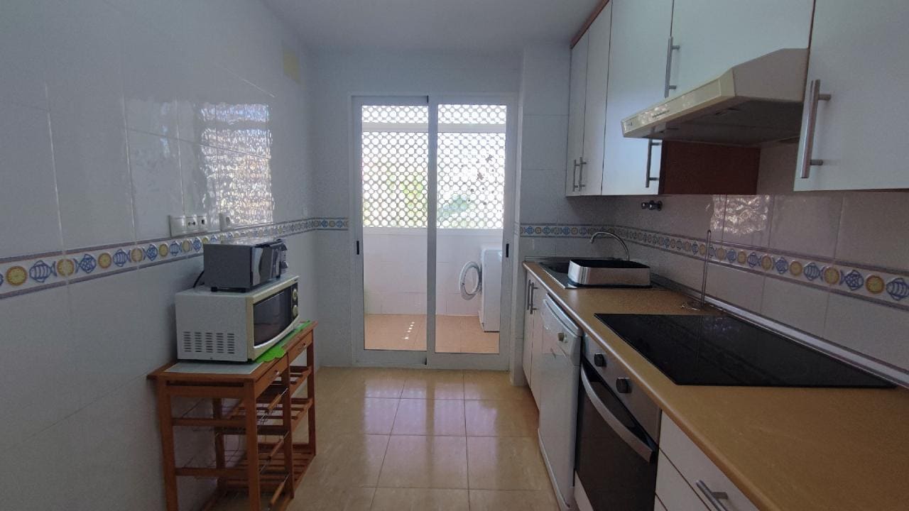La propiedad dispone de 3 amplios dormitorios uno de los cuales dispone de aire acondicionado, 2 baños, un amplio salón con acceso a una gran terraza con bonitas vistas al mar, una gran cocina independiente con lavadero. El apartamento está totalmente amueblado y equipado con electrodomésticos. El apartamento está en excelentes condiciones, puertas y armarios empotrados de roble, puerta de entrada blindada, ventanas de climalit, persianas.