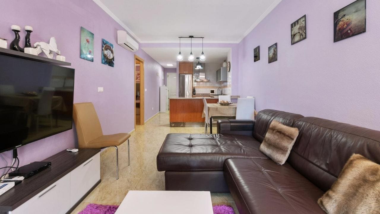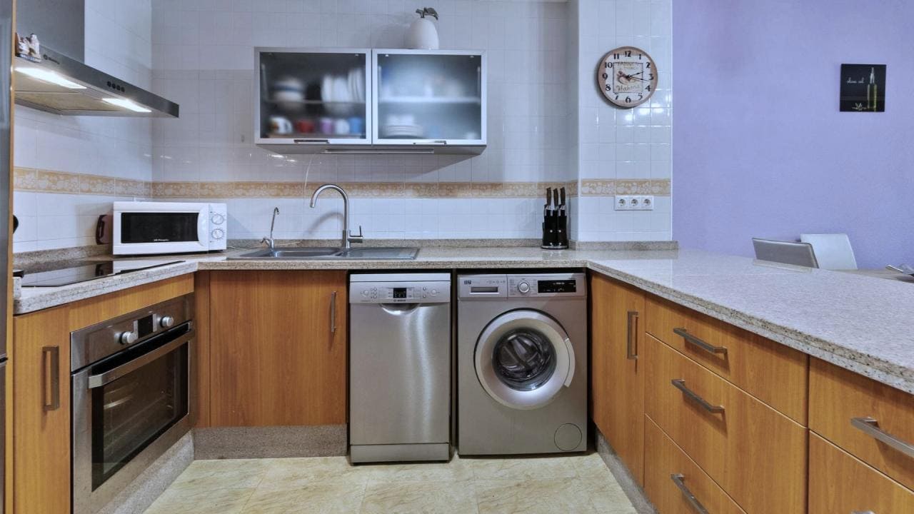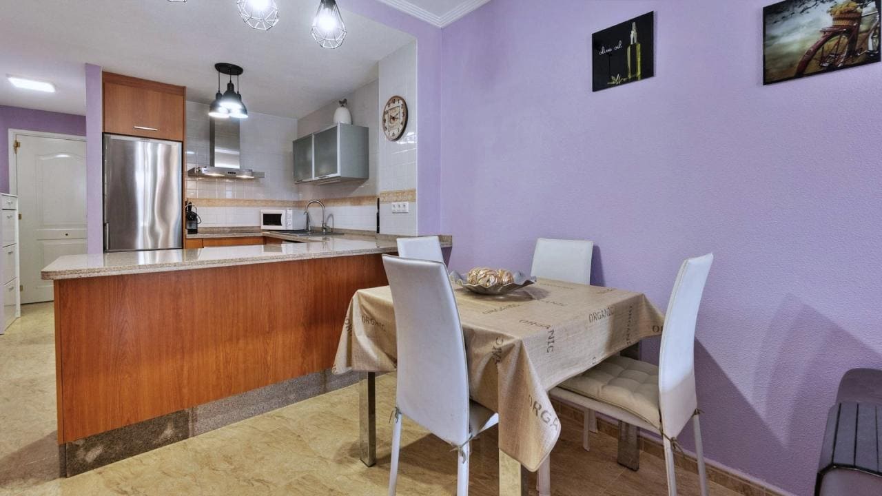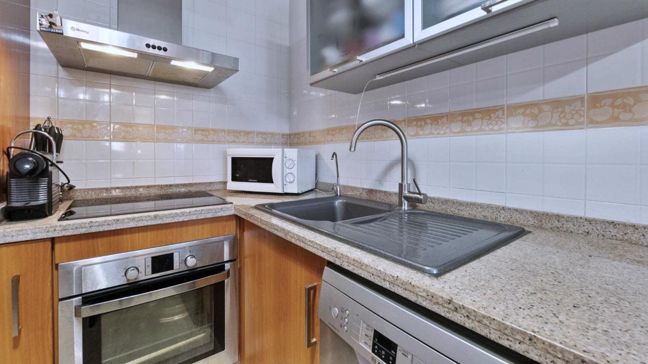 La cocina es de tipo americana y se encuentra totalmente equipada. El apartamento se vende completamente amueblado y cuenta con aire acondicionado en todas las habitaciones, garantizando un confort excelente durante todo el año.