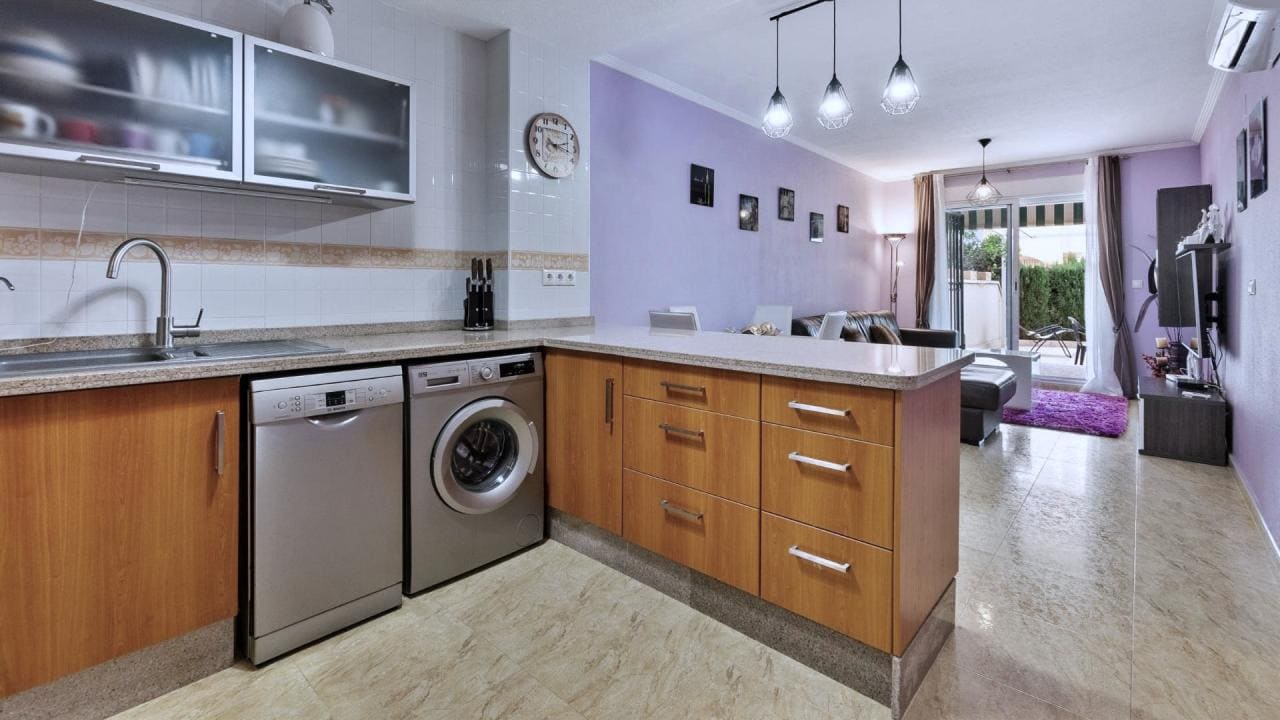Descubre este atractivo apartamento de estilo contemporáneo en planta baja, situado en una de las zonas más solicitadas de Orihuela Costa: Dehesa de Campoamor. Esta propiedad combina a la perfección la comodidad de un hogar moderno con una ubicación inmejorable, a solo 800 metros de la playa y del puerto deportivo.