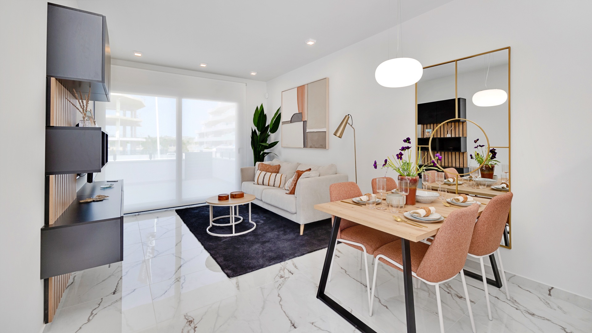 Disponibles apartamentos ubicados entre la primera y la sexta planta, con superficies interiores de 70 a 72 m², distribuidos en 2 dormitorios y 2 baños, ofreciendo espacios bien aprovechados y llenos de luz natural. Cada vivienda cuenta con amplias terrazas privadas de entre 19 y 25 m², ideales para disfrutar del clima mediterráneo, crear una zona de relax o comedor exterior. Los precios varían entre 224.000 € y 279.000 €, según altura y orientación, representando una excelente oportunidad tanto para residencia habitual como para inversión en la Costa Blanca Sur.