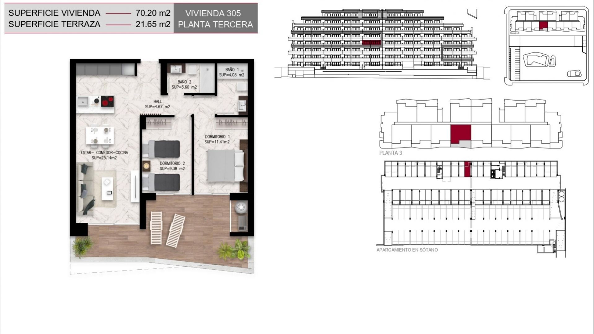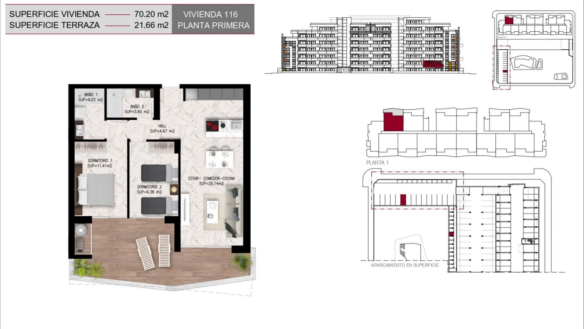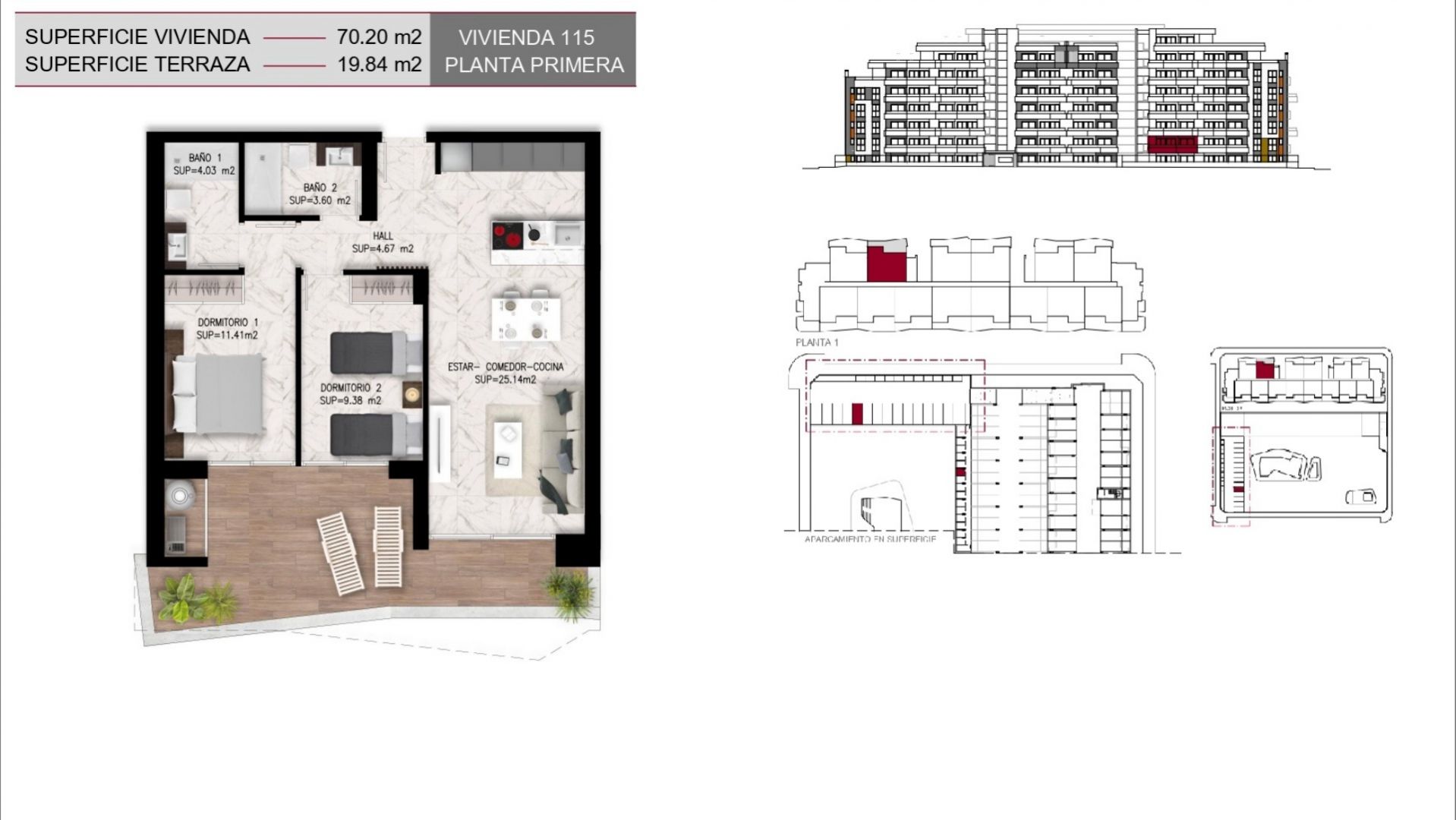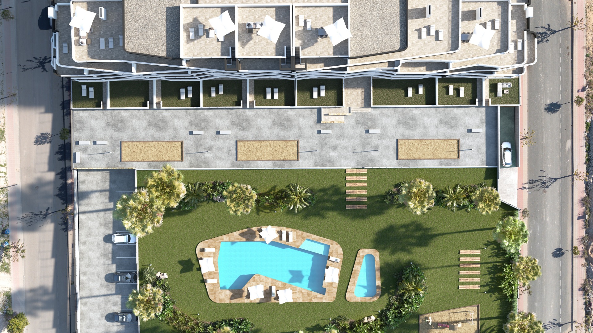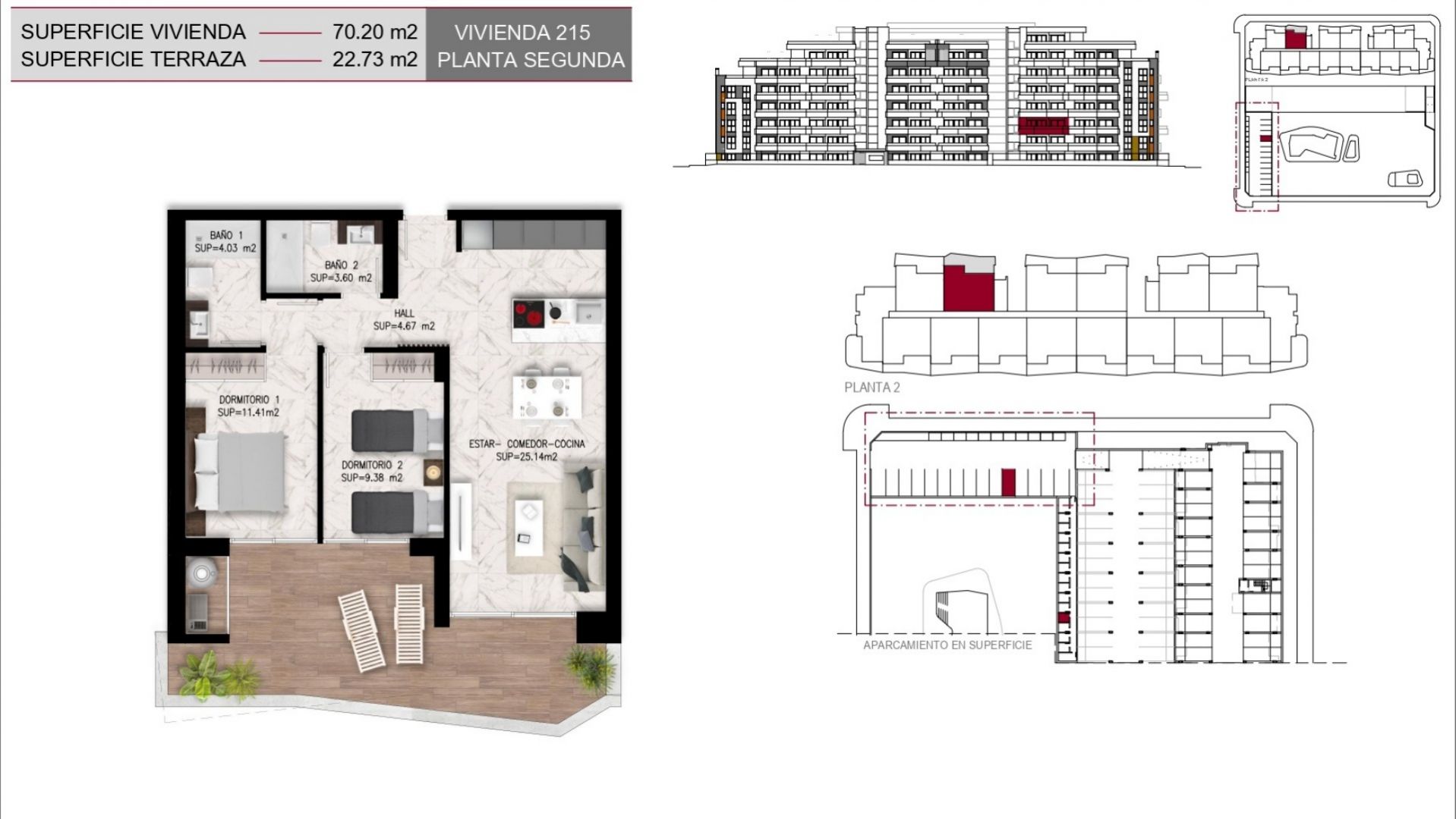 Los apartamentos, diseñados con una distribución funcional, cuentan con 2 dormitorios y 2 baños, ofreciendo un espacio ideal tanto para familias como para parejas que buscan un hogar acogedor y elegante. Cada unidad se entrega completamente amueblada, lo que garantiza una experiencia de mudanza sin complicaciones, además de incluir una plaza de parking y una zona de almacenaje que añaden un valor significativo a la propiedad. Las grandes terrazas privadas son, sin duda, uno de los puntos más destacados de estas viviendas, permitiendo disfrutar de momentos al aire libre en un ambiente de paz y armonía, mientras que las calidades de construcción, que incluyen ventanas de PVC con doble acristalamiento y sistemas de climatización de última generación, aseguran un confort absoluto durante todo el año.