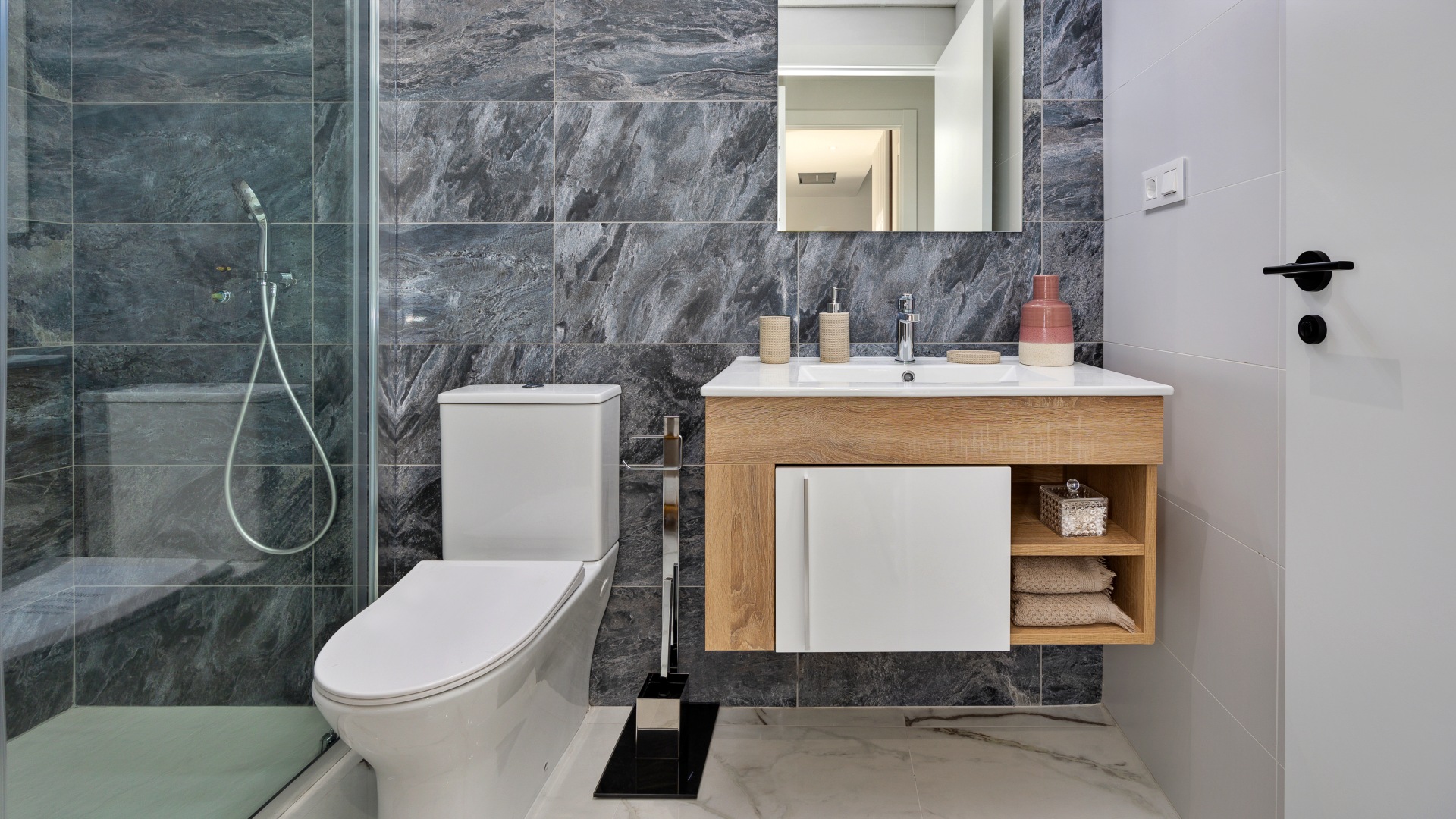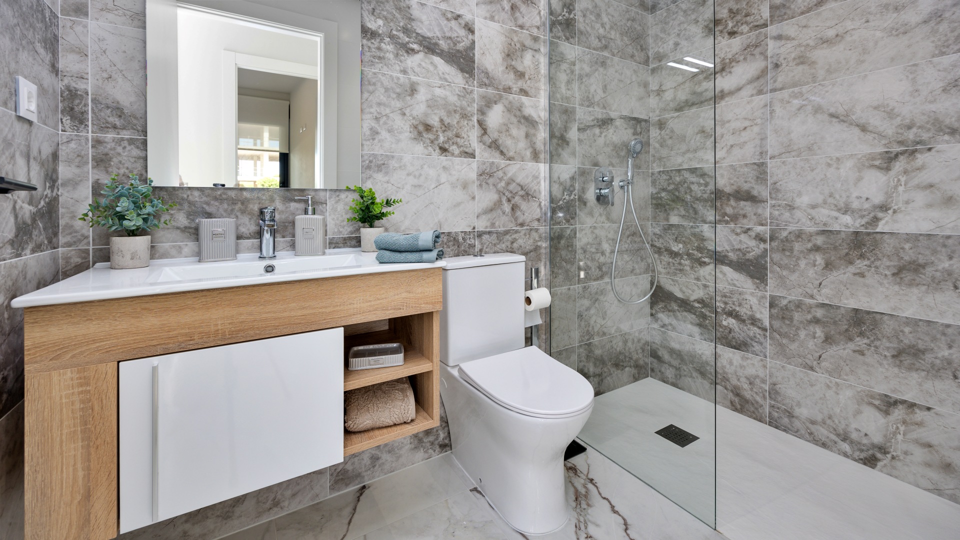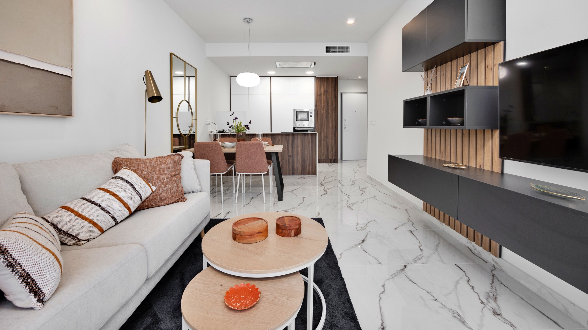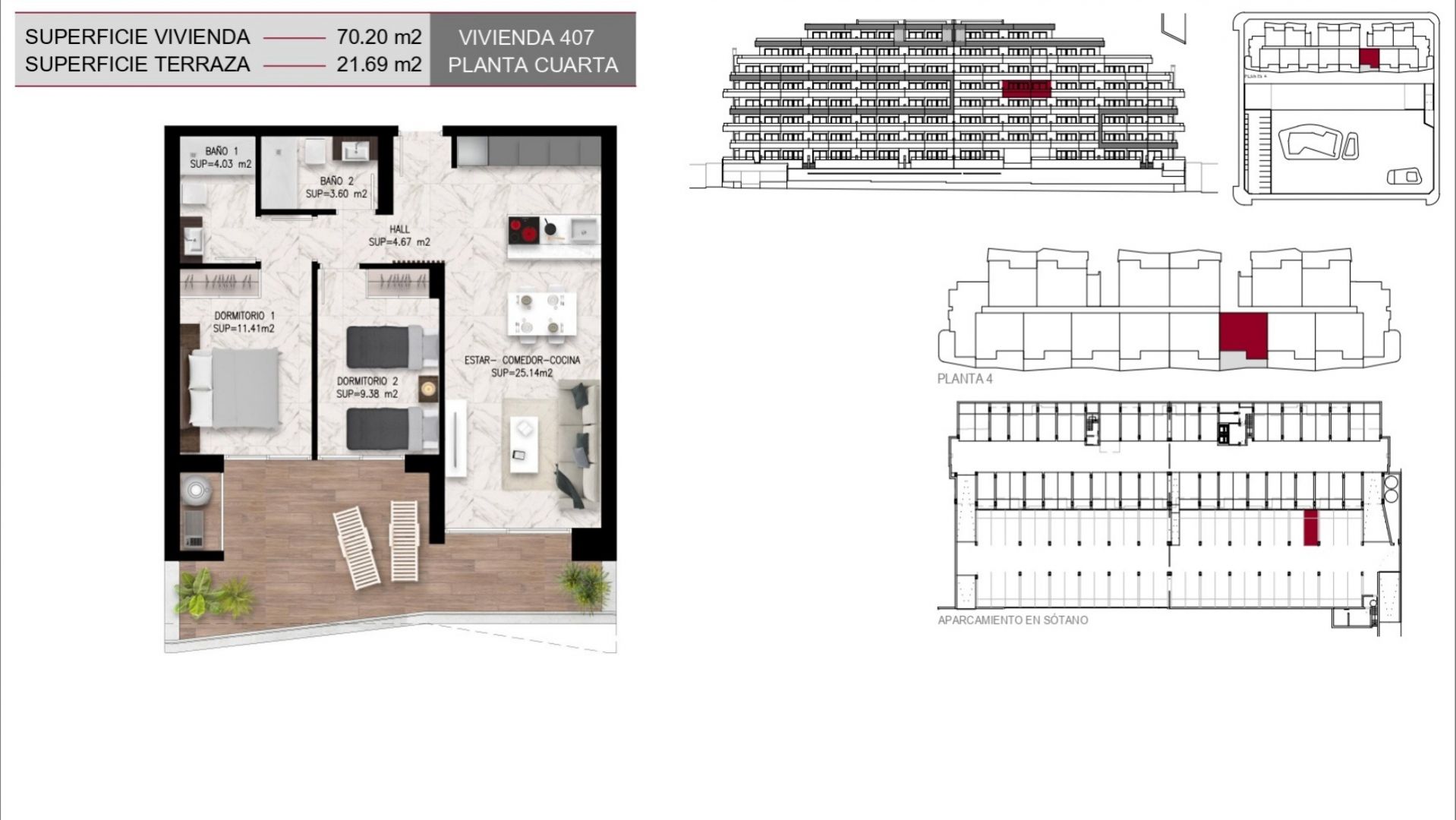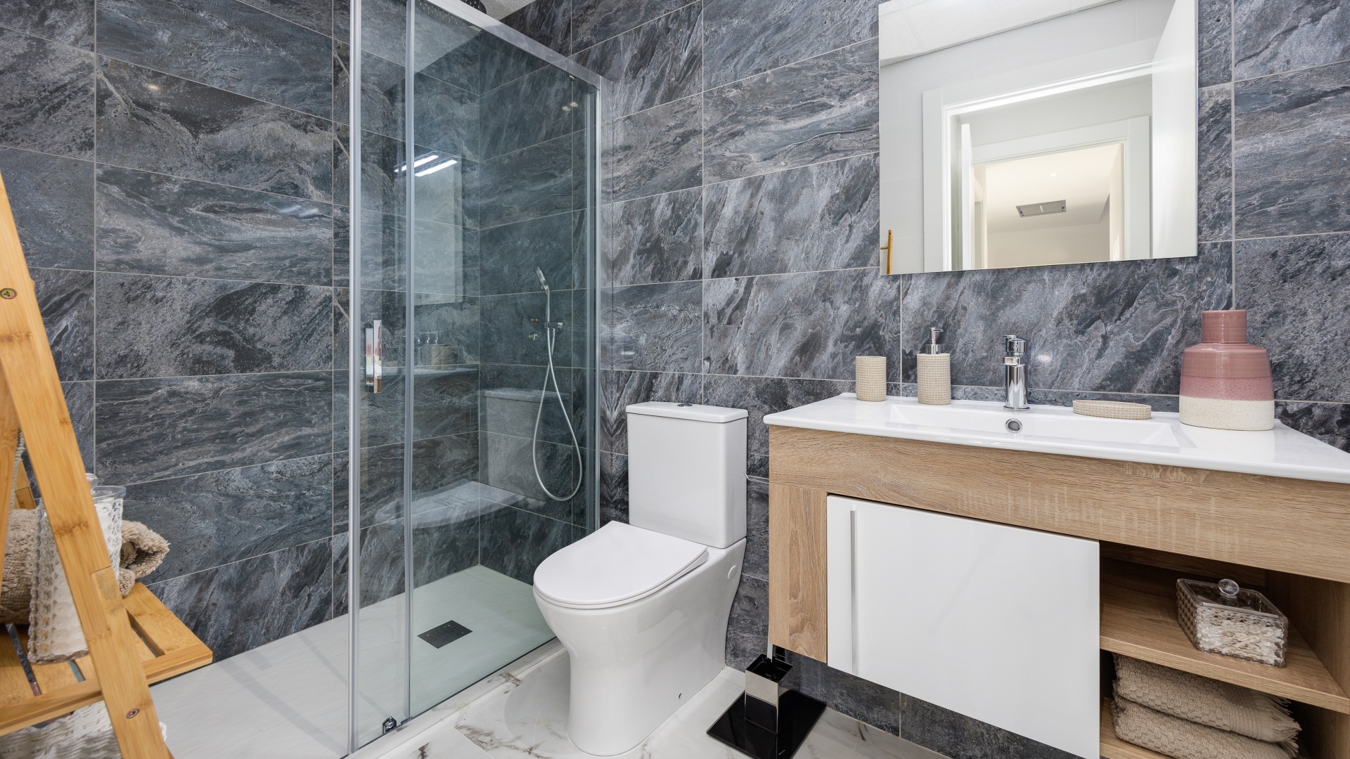 Los apartamentos, diseñados con una distribución funcional, cuentan con 2 dormitorios y 2 baños, ofreciendo un espacio ideal tanto para familias como para parejas que buscan un hogar acogedor y elegante. Cada unidad se entrega completamente amueblada, lo que garantiza una experiencia de mudanza sin complicaciones, además de incluir una plaza de parking y una zona de almacenaje que añaden un valor significativo a la propiedad. Las grandes terrazas privadas son, sin duda, uno de los puntos más destacados de estas viviendas, permitiendo disfrutar de momentos al aire libre en un ambiente de paz y armonía, mientras que las calidades de construcción, que incluyen ventanas de PVC con doble acristalamiento y sistemas de climatización de última generación, aseguran un confort absoluto durante todo el año.