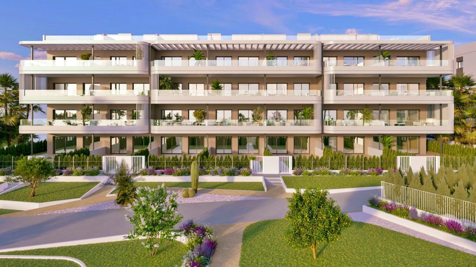 Ofrecemos a la venta apartamentos de 3 dormitorios y 2 baños, diseñados con distribuciones modernas y amplios espacios exteriores. Las viviendas en planta baja disponen de grandes terrazas y un jardín privado de 117 m², con precios entre 375.000 € y 395.000 €. Los apartamentos situados en plantas intermedias cuentan con terrazas amplias de 30 m² y se ofrecen desde 355.000 € hasta 380.000 €. Además, están disponibles exclusivos áticos con solárium privado de 63 m², ideales para disfrutar del sol y la privacidad, con precios que oscilan entre 395.000 € y 420.000 €.
