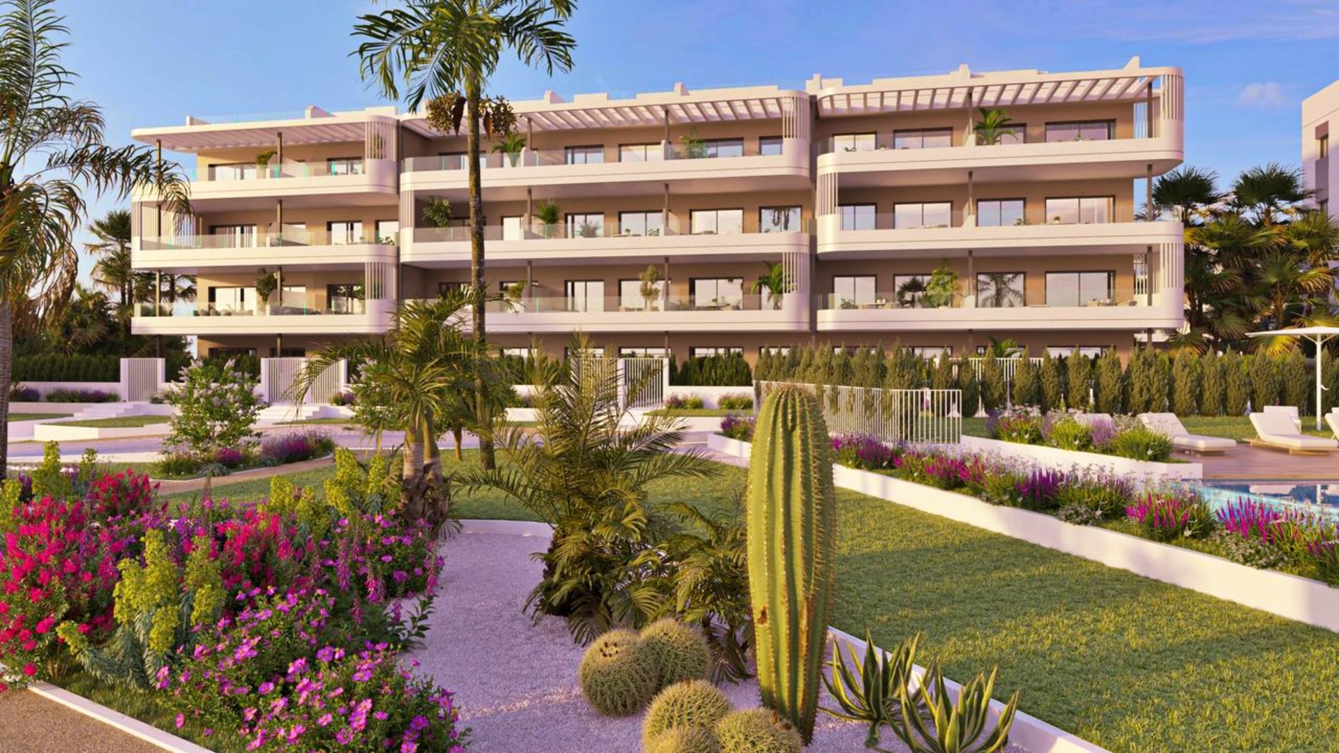 Presentamos un nuevo complejo residencial moderno, diseñado para ofrecer el máximo confort y calidad de vida en la Costa Blanca. El proyecto consta de 172 viviendas, distribuidas en 6 bloques de planta baja más tres alturas, además de dos plantas sótano destinadas a plazas de aparcamiento y trasteros. Se ofrecen viviendas de 2 y 3 dormitorios, todas con 2 baños completos y orientación sur/oeste, lo que garantiza una excelente luminosidad durante todo el día. La disposición de los edificios ha sido cuidadosamente estudiada para que todas las viviendas disfruten de agradables vistas hacia las amplias zonas comunes. Según tipología, existen opciones con jardines privados en planta baja, grandes terrazas en plantas intermedias y solárium privados en las plantas superiores.