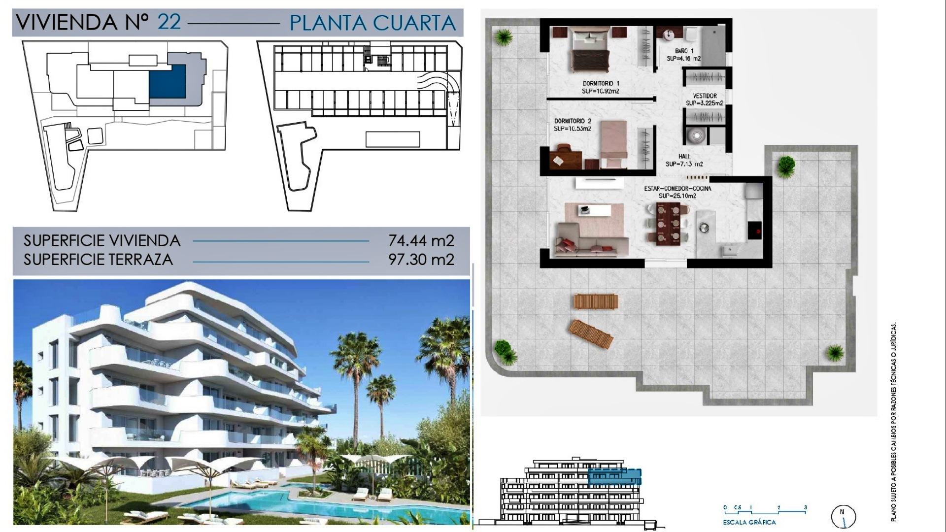 El complejo residencial ha sido concebido como una urbanización moderna de estilo resort, con recinto cerrado, zonas comunes cuidadas y un ambiente tranquilo y elegante. Un espacio pensado para disfrutar del sol, la privacidad y el confort en un entorno costero de alto nivel.