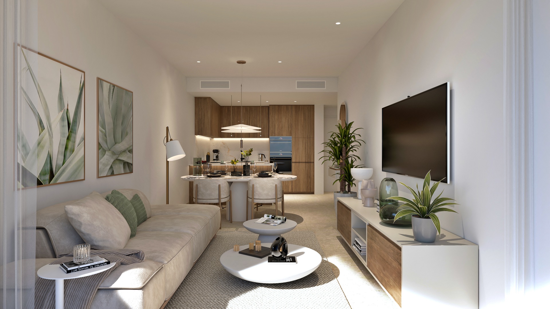 Las viviendas se entregan totalmente equipadas, incluyendo plaza de garaje y trastero, sistema de aire acondicionado instalado y electrodomésticos, lo que permite entrar a vivir o comenzar a alquilar de inmediato. Los acabados son modernos y de calidad, con soluciones energéticamente eficientes y aerotermia para el agua caliente, garantizando confort durante todo el año.