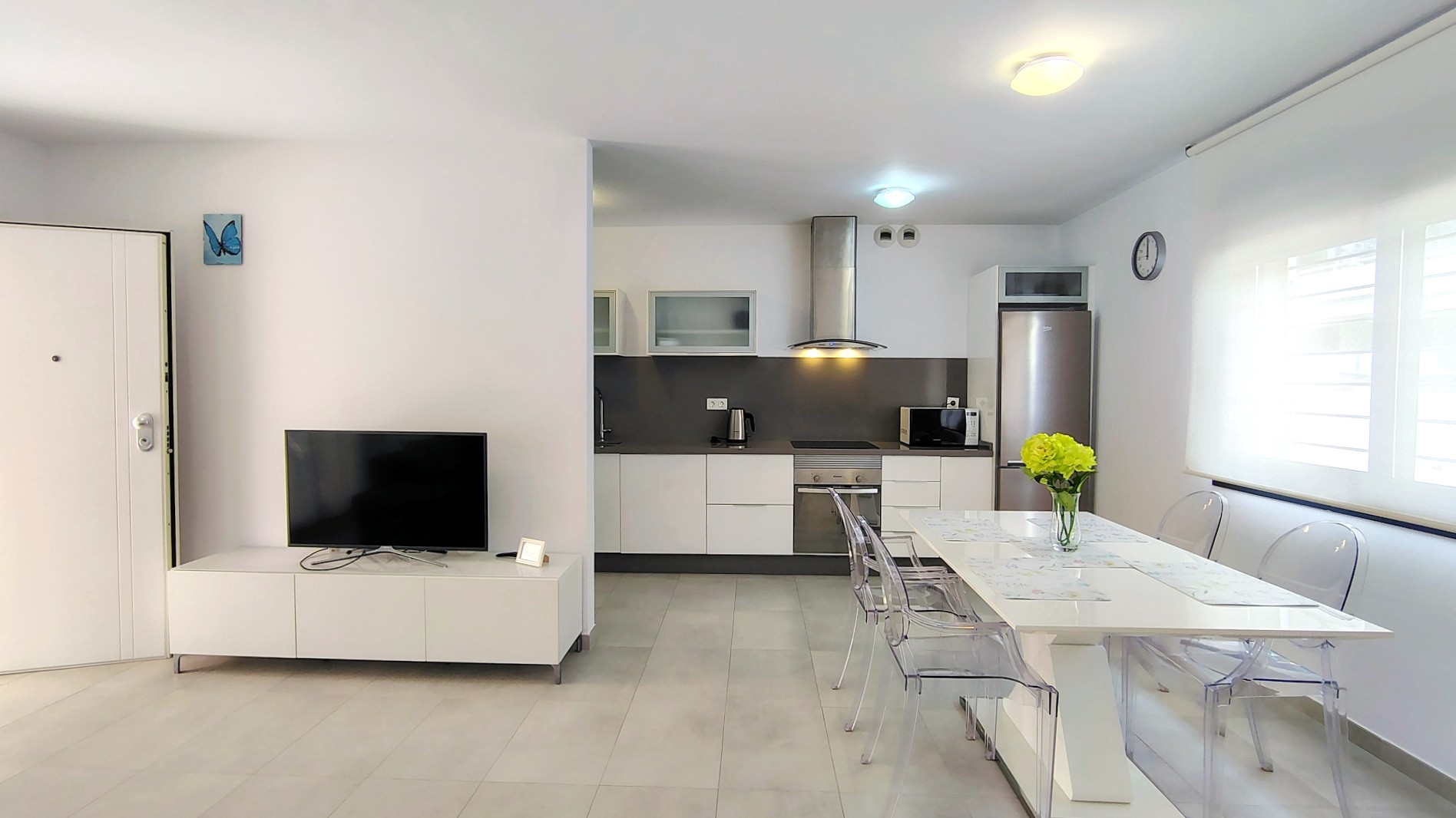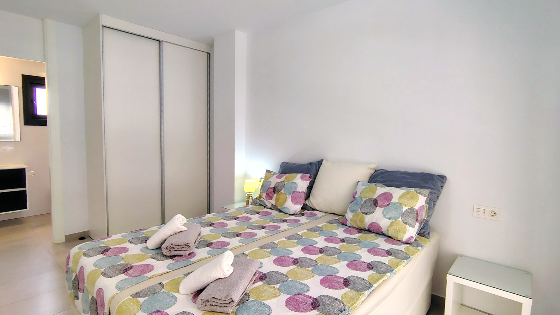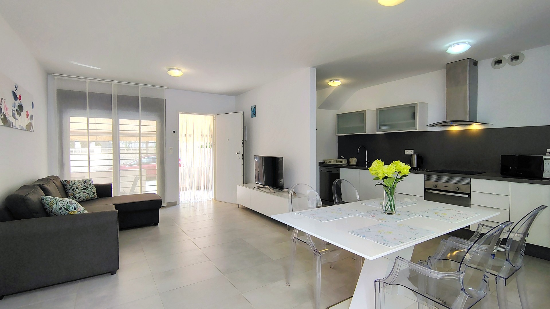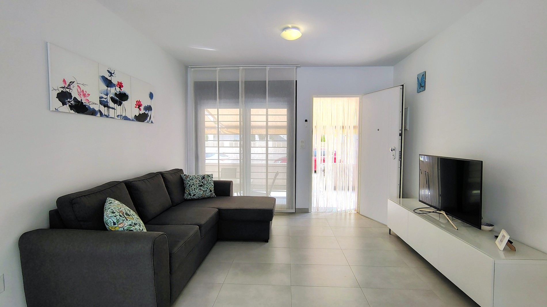 La vivienda es un bonito apartamento moderno que destaca por su amplitud y funcionalidad. Dispone de 2 amplios dormitorios y 2 baños completos, además de un salón y una cocina perfectamente equipados con todo lo necesario para sus vacaciones. La zona exterior es igualmente atractiva, con una amplia terraza que incluye tumbonas, sillas y una mesa, ofreciendo un espacio perfecto para relajarse y comer al aire libre.