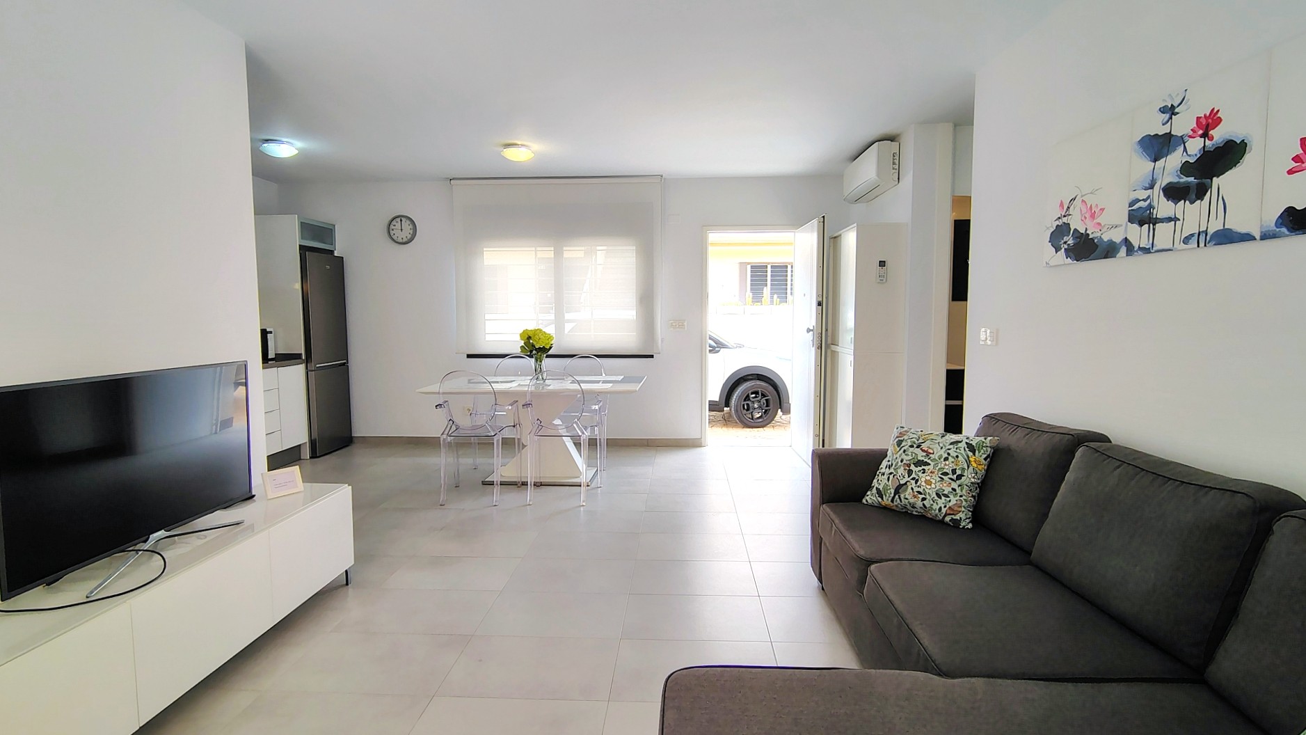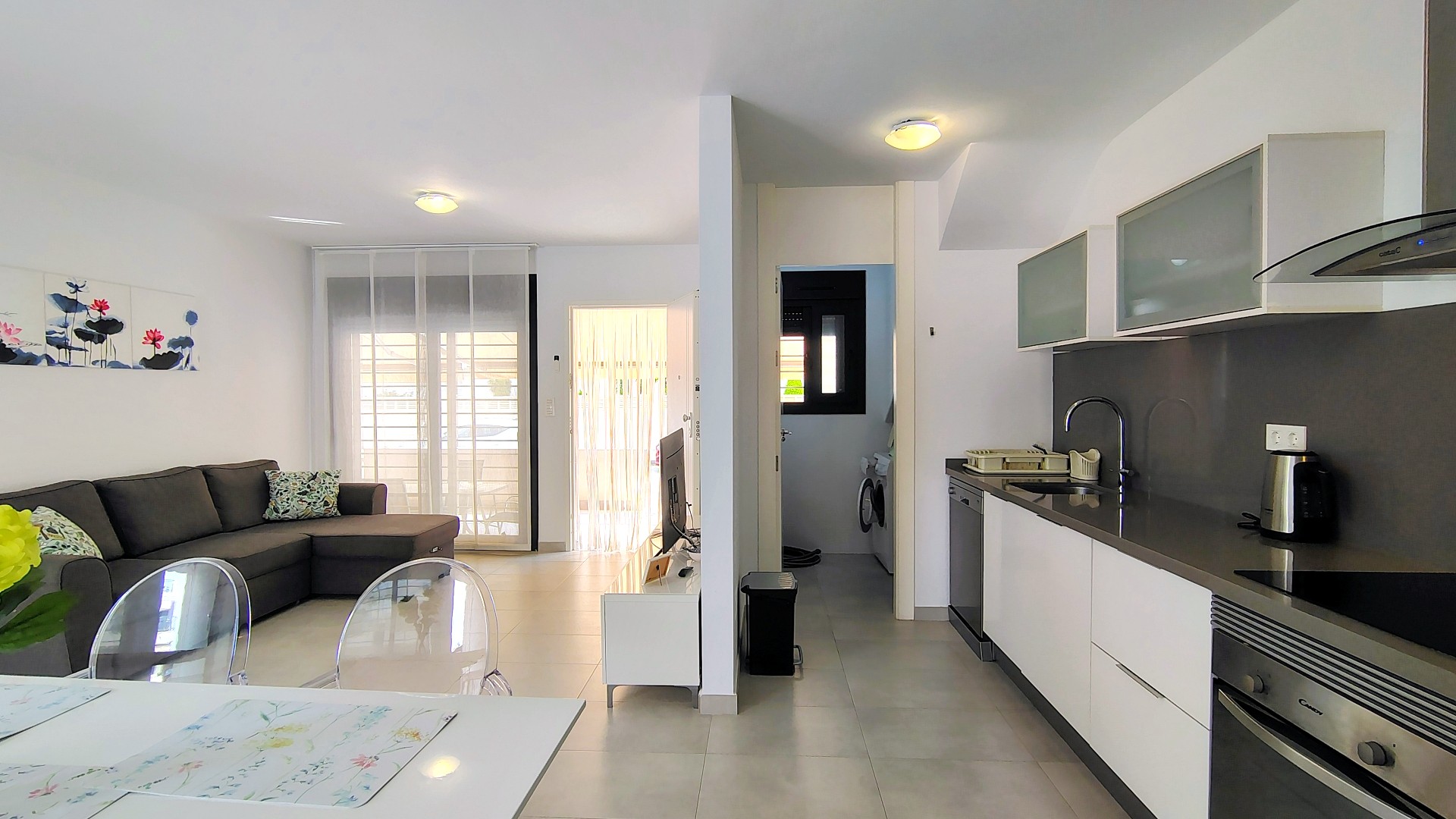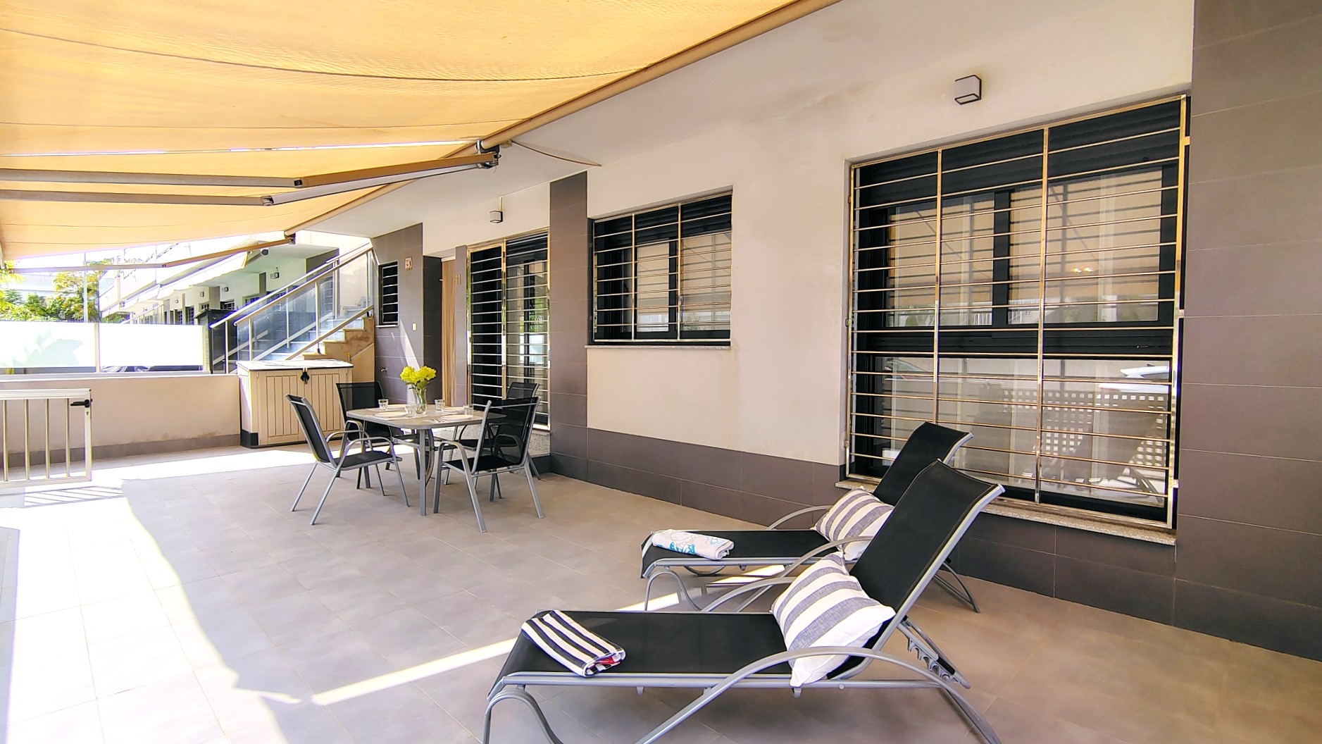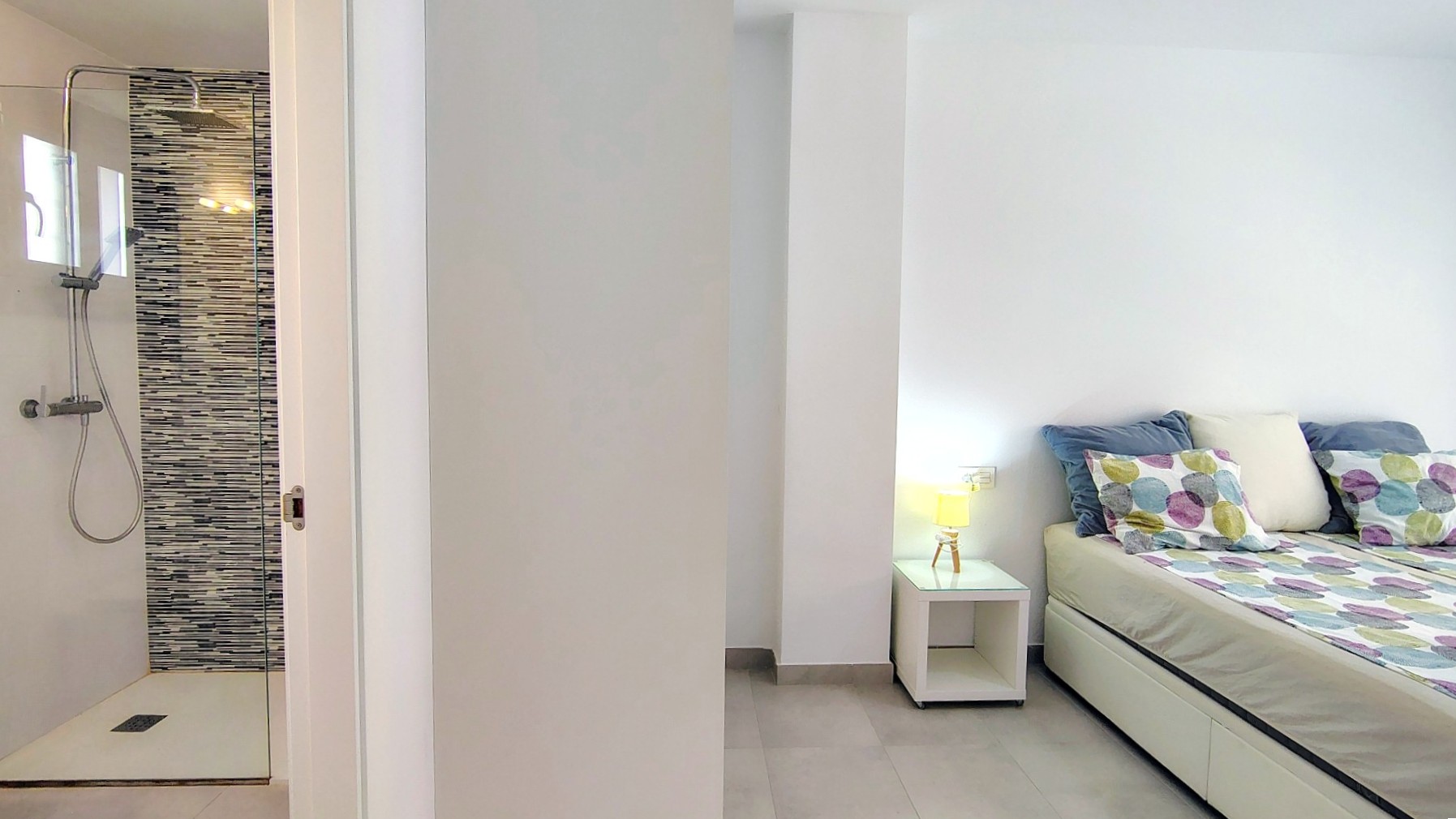 La vivienda es un bonito apartamento moderno que destaca por su amplitud y funcionalidad. Dispone de 2 amplios dormitorios y 2 baños completos, además de un salón y una cocina perfectamente equipados con todo lo necesario para sus vacaciones. La zona exterior es igualmente atractiva, con una amplia terraza que incluye tumbonas, sillas y una mesa, ofreciendo un espacio perfecto para relajarse y comer al aire libre.
