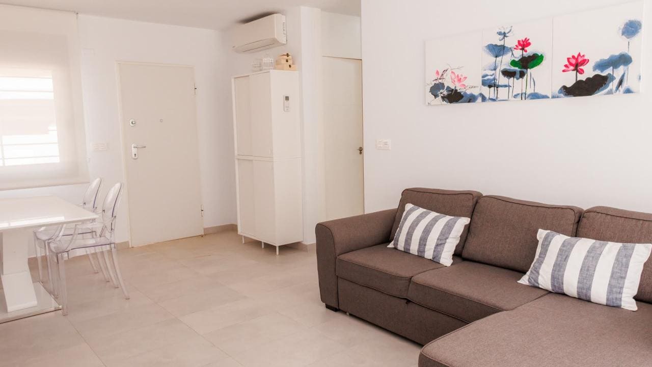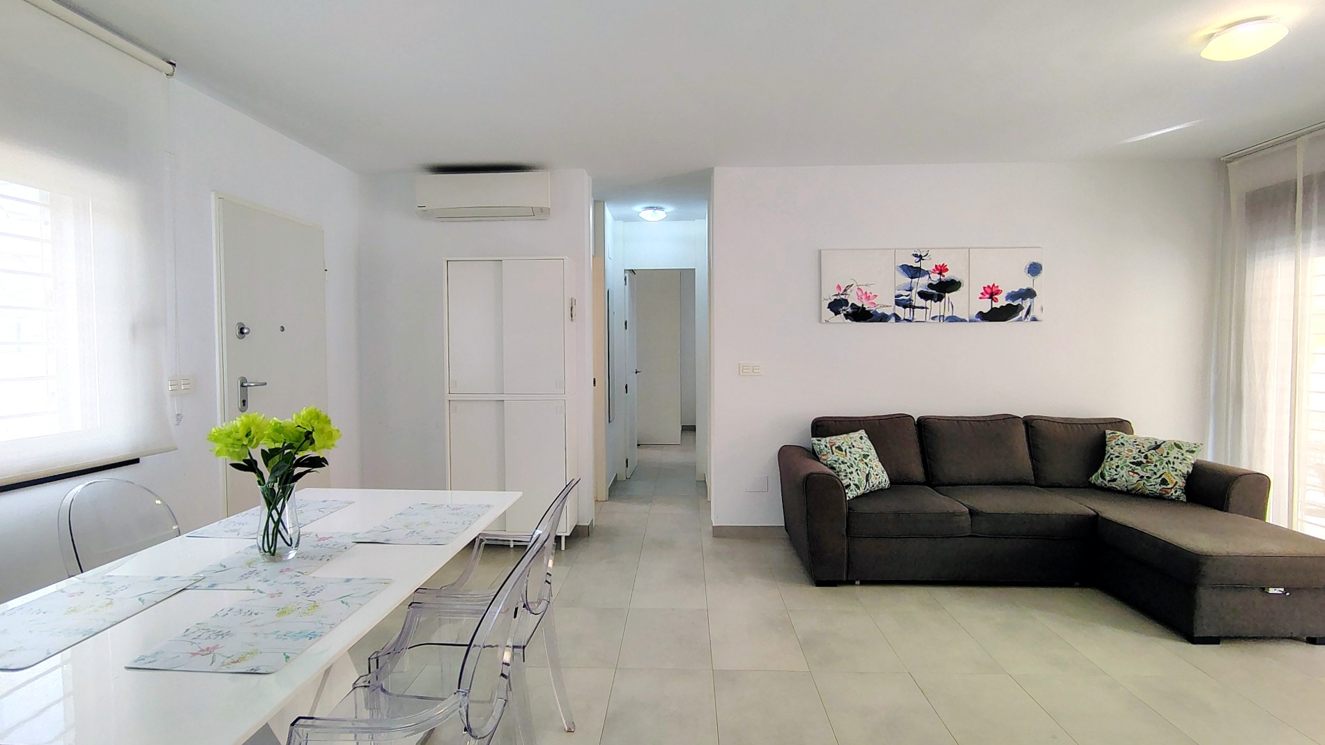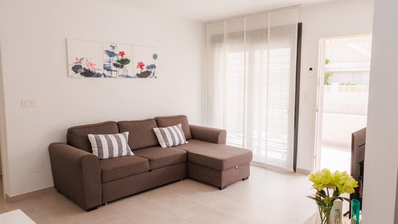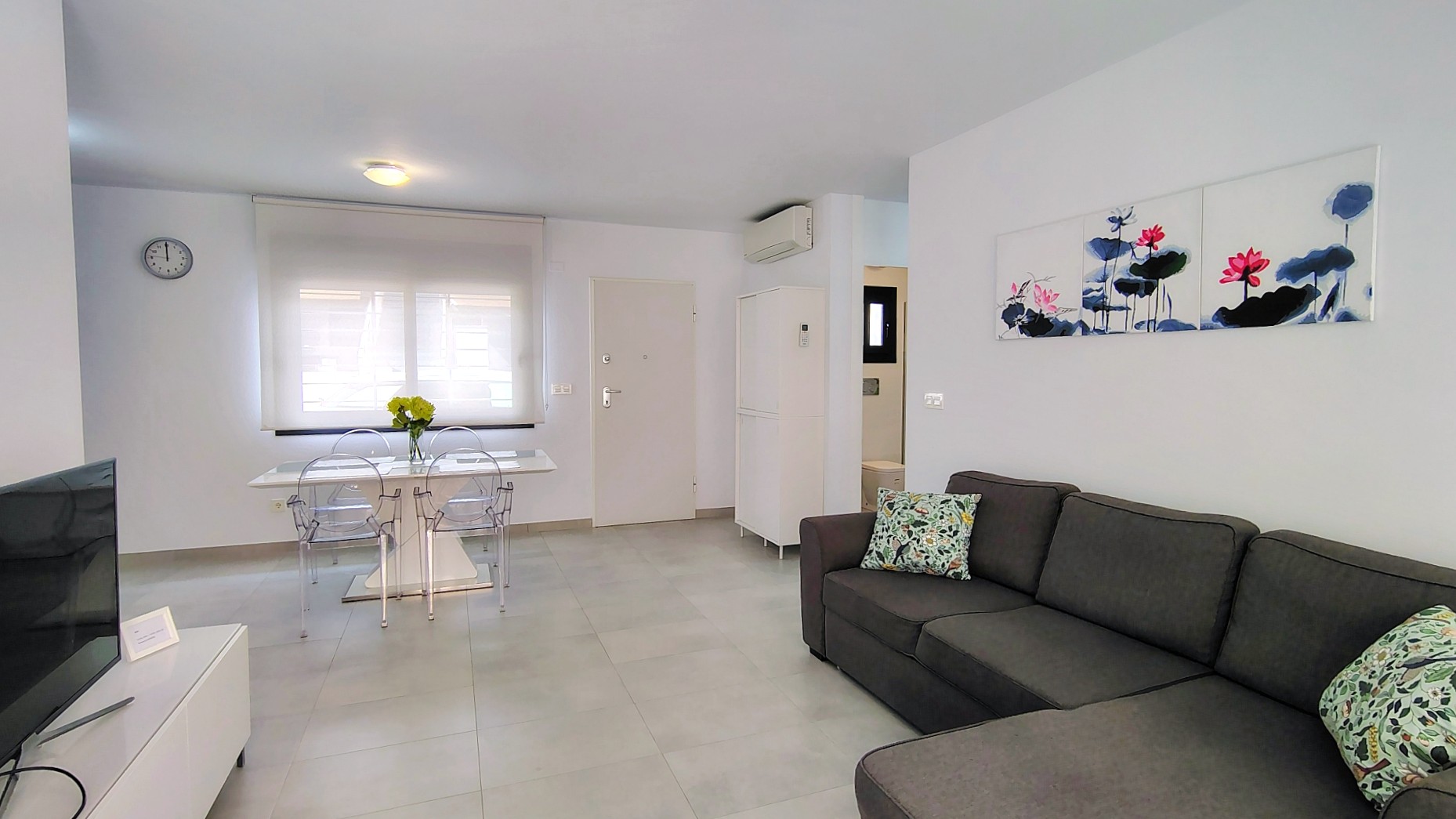 La vivienda es un bonito apartamento moderno que destaca por su amplitud y funcionalidad. Dispone de 2 amplios dormitorios y 2 baños completos, además de un salón y una cocina perfectamente equipados con todo lo necesario para sus vacaciones. La zona exterior es igualmente atractiva, con una amplia terraza que incluye tumbonas, sillas y una mesa, ofreciendo un espacio perfecto para relajarse y comer al aire libre.