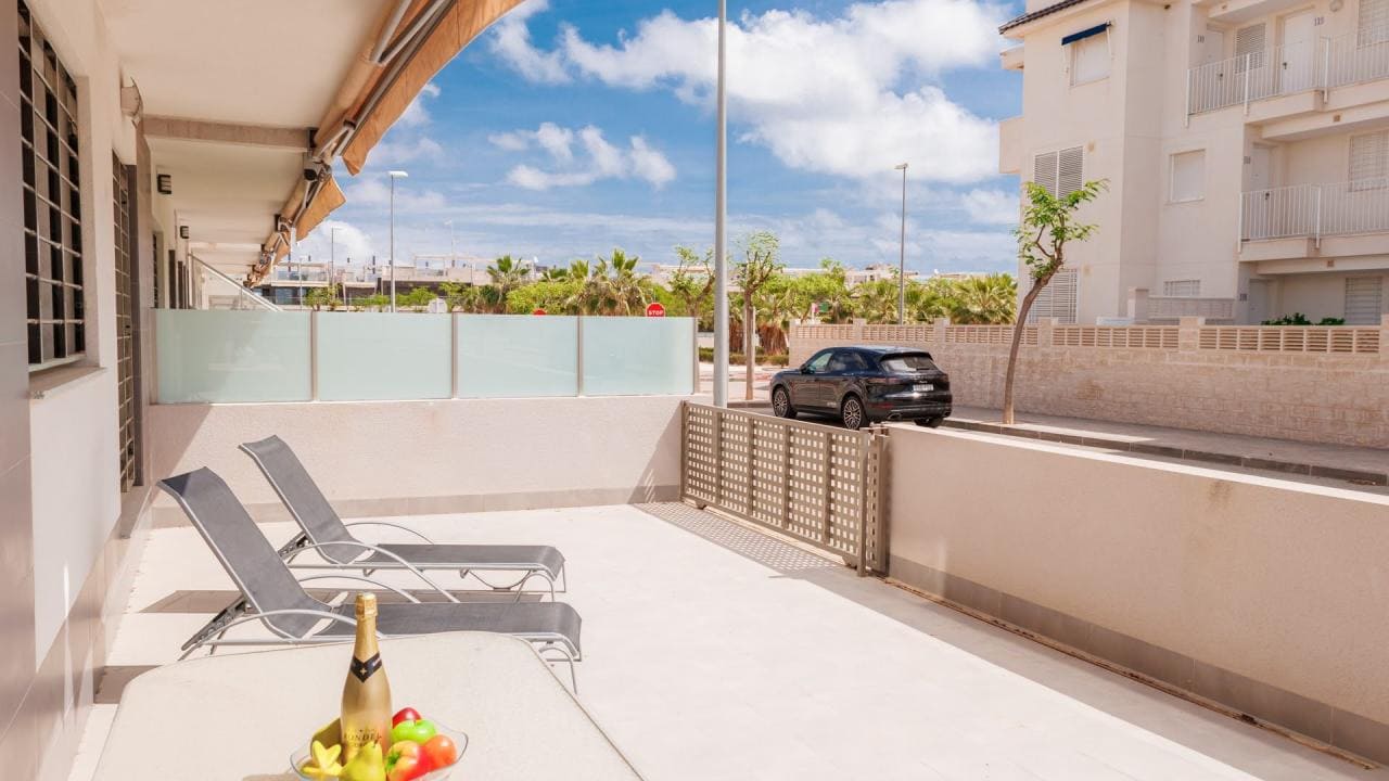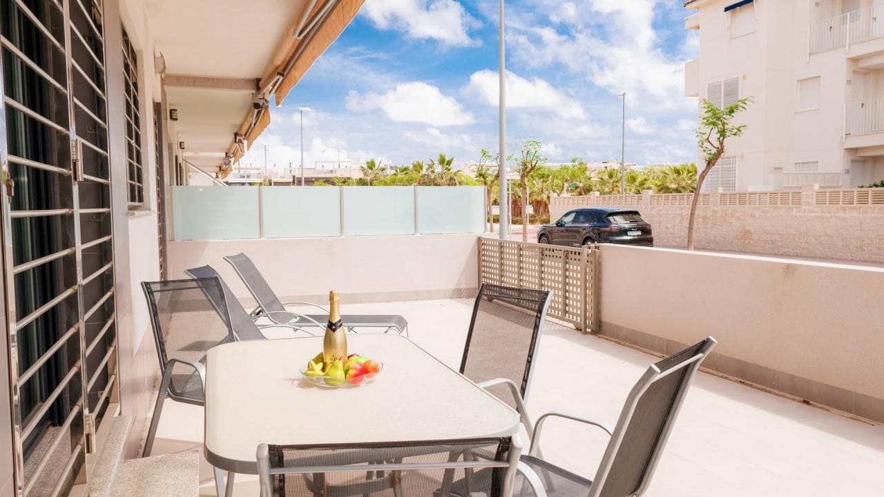 Este excelente apartamento está ubicado en el prestigioso lugar de Mil Palmeras, dentro de la popular urbanización de Torre de la Horadada. Su localización es inmejorable, a escasos metros de la playa y a solo unos minutos a pie de todo tipo de servicios esenciales como bares, restaurantes, comercios, farmacias y supermercados. Esto garantiza una estancia cómoda y accesible, ideal para disfrutar del sol y la vida costera sin necesidad de utilizar el coche.