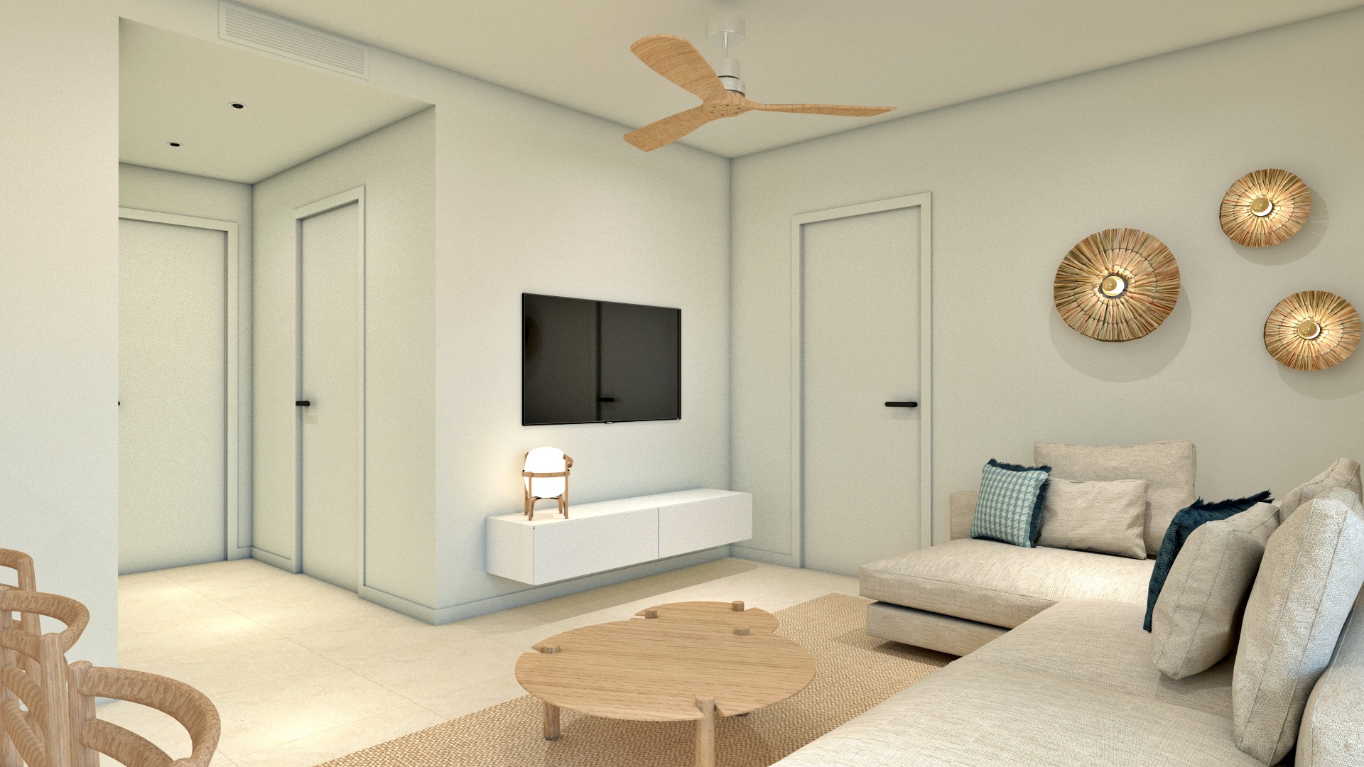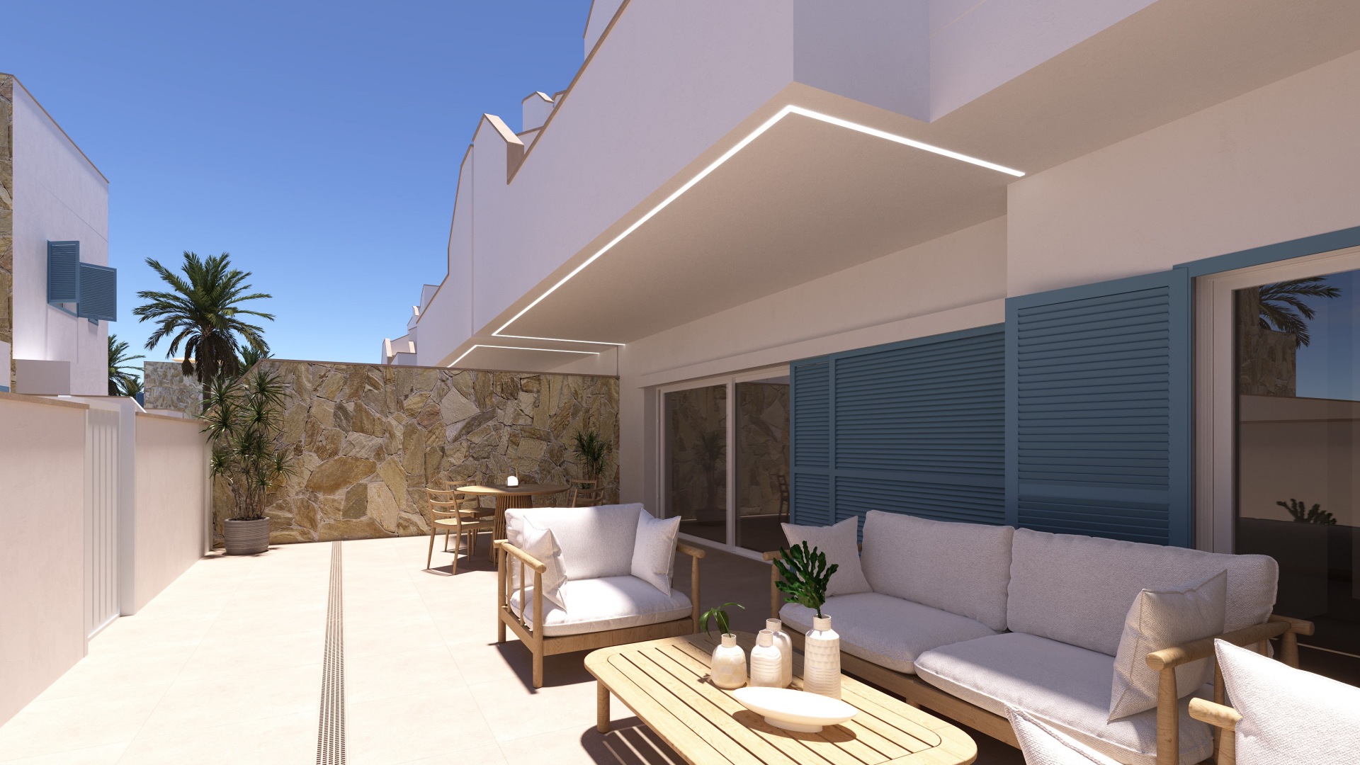 El residencial ofrece zonas comunes ajardinadas y piscina, ideales para el descanso y el ocio, en un entorno tranquilo y bien organizado. La ubicación es especialmente práctica: playas de arena fina a pocos minutos, supermercados, comercios, restaurantes, centros de ocio y colegios en las proximidades. El aeropuerto de Alicante se encuentra a aproximadamente 45 minutos en coche, lo que garantiza una excelente conexión.