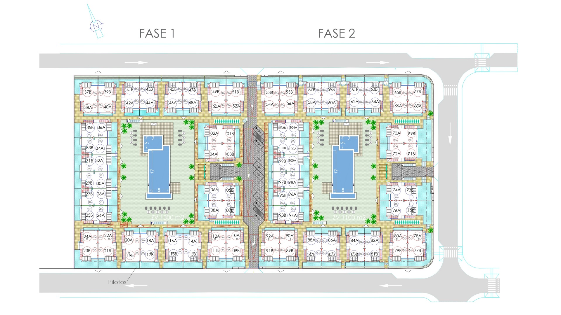 El residencial ofrece amplias zonas ajardinadas, dos grandes piscinas comunitarias, ambiente tranquilo y vistas despejadas gracias a su ubicación elevada. Existe opción de plaza de garaje subterráneo por 15.000 €.