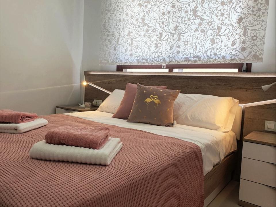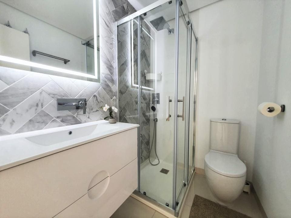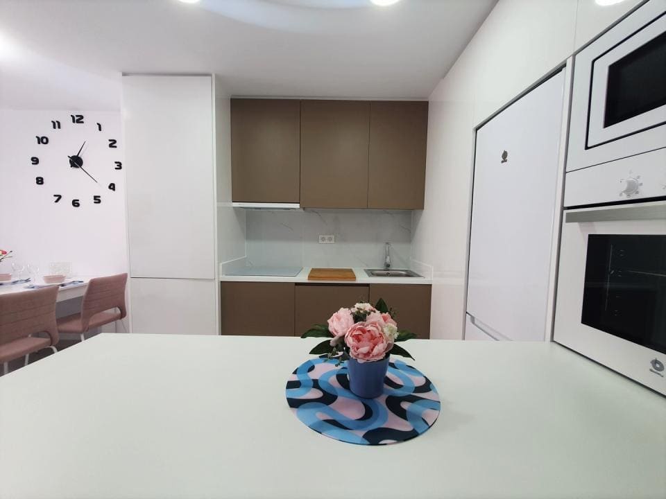 El apartamento consta de 2 dormitorios, 2 baños, salón, cocina y una bonita terraza con comedor equipado con vistas a la piscina y al mar, y una terraza con tumbonas con vistas a la ciudad y al mar. Los apartamentos tienen un sistema de aire acondicionado, muebles y artículos de decoración cuidadosamente seleccionados, una cocina funcional equipada con horno, microondas, lavavajillas y lavadora.