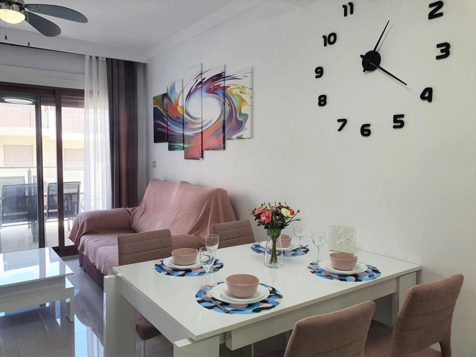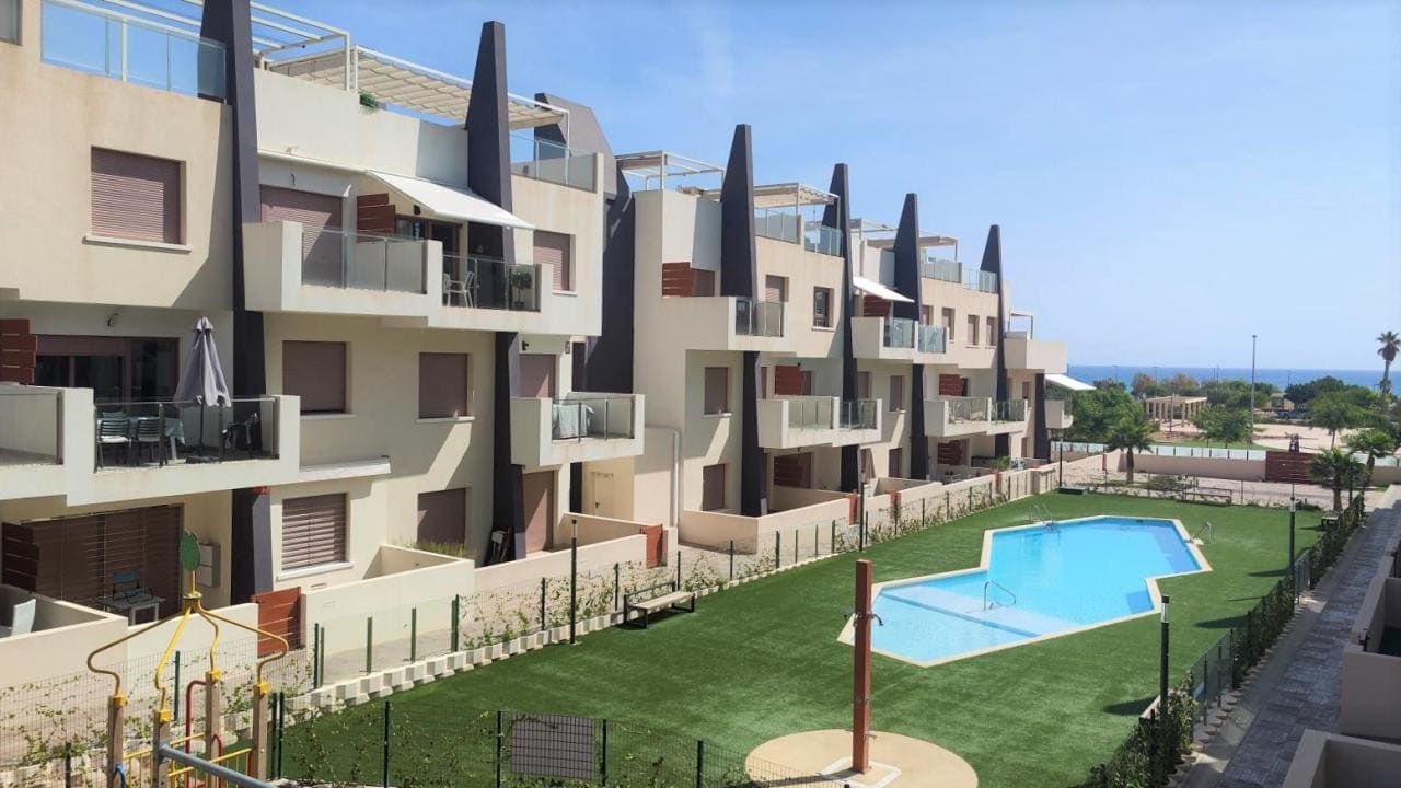 Excelentes apartamentos con una gran terraza se encuentran en el complejo residencial Bianca Beach, que se encuentra en el pequeño y acogedor pueblo de Mil Palmeras, en el sur de la provincia de Alicante, en la costa mediterránea de España.