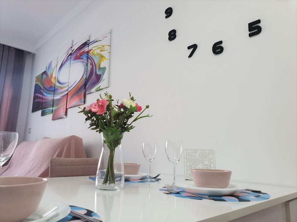 Primero, está ubicado en una calle tranquila rodeada de complejos similares. Enfrente hay un parque y al lado del complejo hay muchos parques infantiles, campos deportivos, paseos junto al mar, carriles bici, a menos de 200 metros hay una pequeña y acogedora bahía, y a una distancia de 250 metros hay un amplia playa equipada.