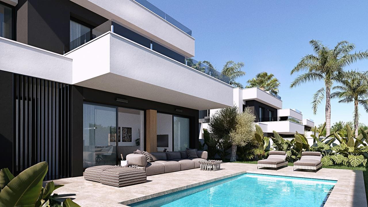 La propiedad se distribuye en dos plantas, ofreciendo un total de 3 dormitorios confortables y 3 baños completos con acabados modernos. El corazón de la casa es un espacioso salón-comedor con un diseño de cocina abierta, totalmente equipada con electrodomésticos integrados de última generación. Los espacios exteriores son excepcionales, incluyendo una piscina privada de 18 m², zonas ajardinadas, un balcón de 30 m² y un espectacular solárium privado de 31 m² con vistas al entorno natural.