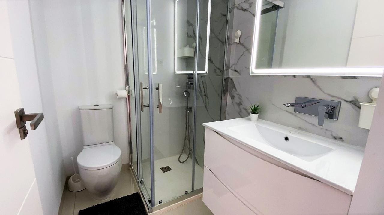 Dentro del apartamento nos encontramos con un amplio y luminoso salon comedor con ventanales hasta el suelo. Cocina americana, con electrodomesticos nuevos y vitroceramica de induccion. El apartamento se compone de 3 dormitorios, uno de los cuales dispone de un baño privado.