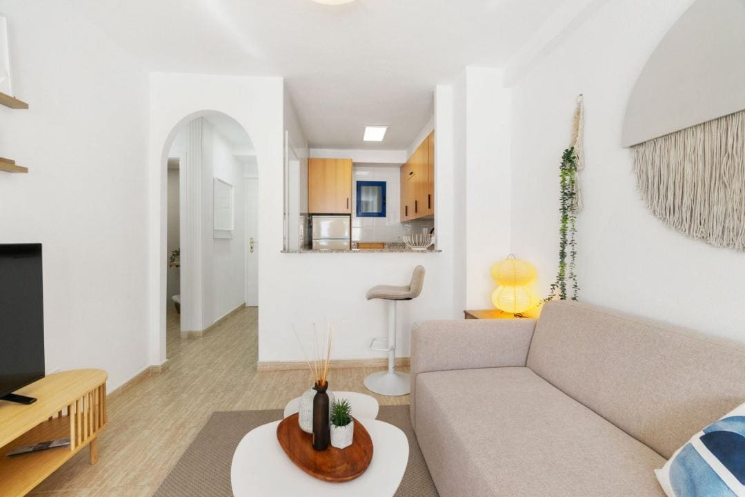 Este apartamento en la exclusiva urbanización Los Altos de Campoamor, en la soleada Dehesa de Campoamor, es el destino perfecto para tus vacaciones. Con un diseño moderno y acogedor, cuenta con 2 dormitorios, 1 baño, una sala de estar luminosa con Smart TV y WiFi de alta velocidad, además de una cocina completamente equipada con electrodomésticos de calidad.