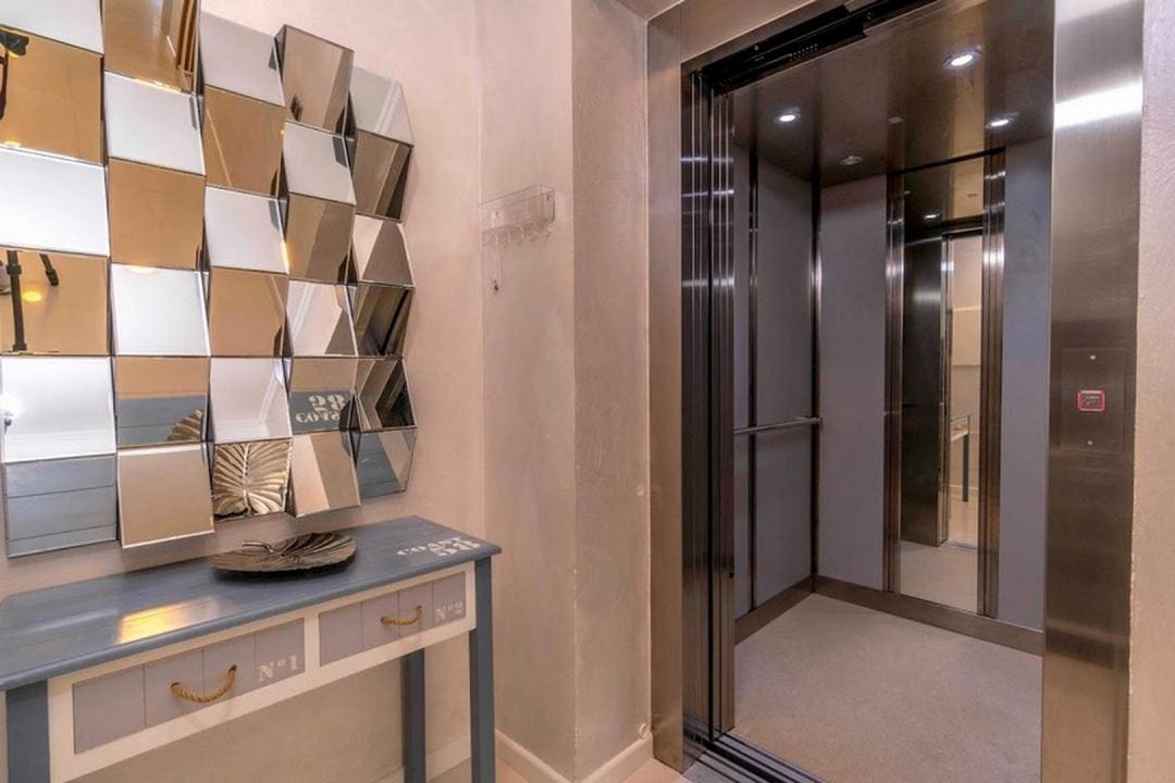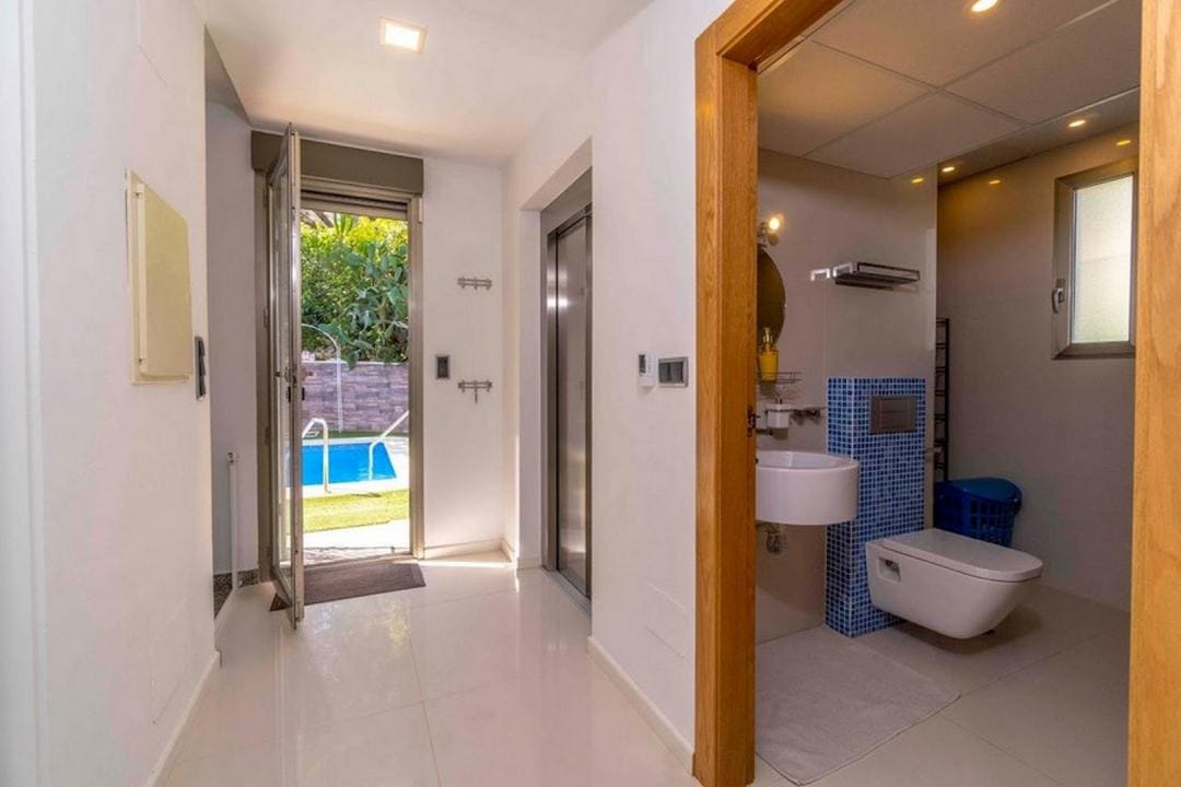 La villa se distribuye en tres plantas, todas conectadas por un elegante ascensor hidráulico con puertas de acero inoxidable y una cómoda escalera, lo que garantiza el máximo confort y accesibilidad en toda la casa.