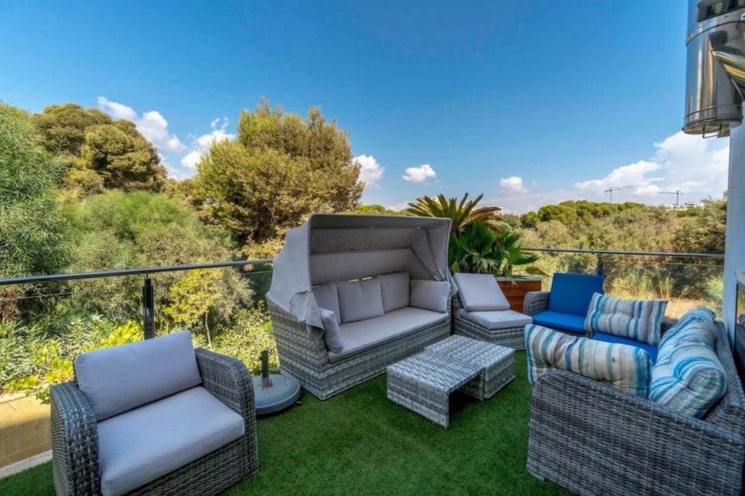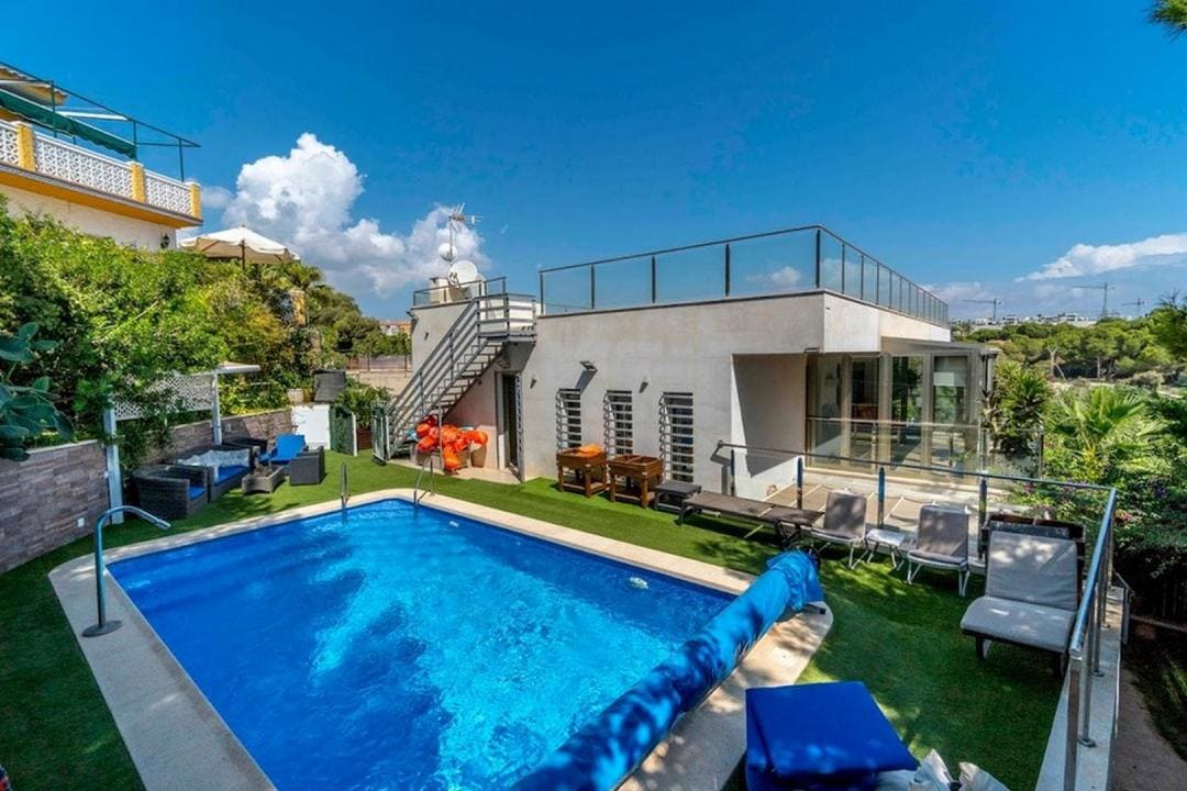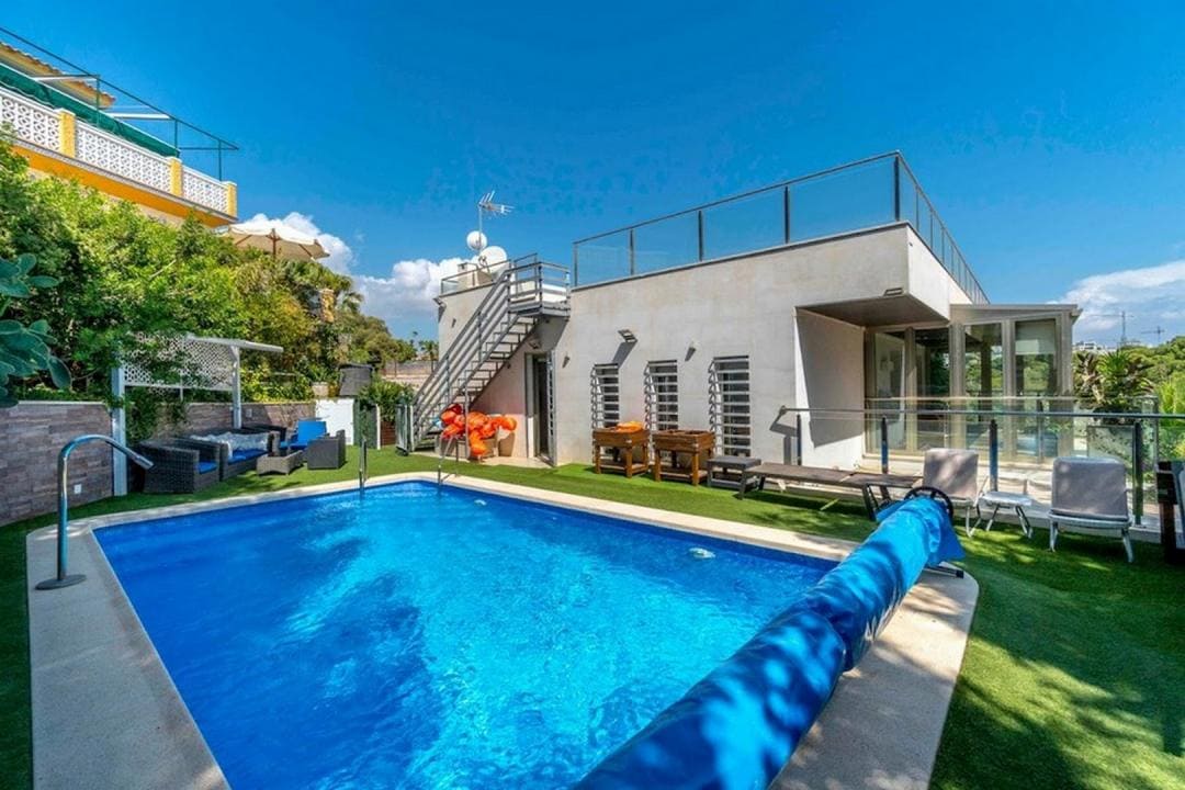 La joya de esta villa es su solárium en la planta superior, un espacio exclusivo para disfrutar del sol mediterráneo y las impresionantes vistas panorámicas de la costa.