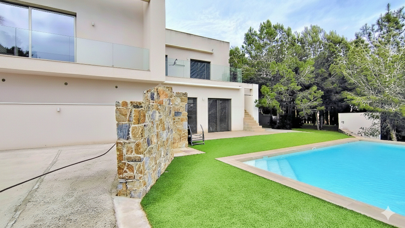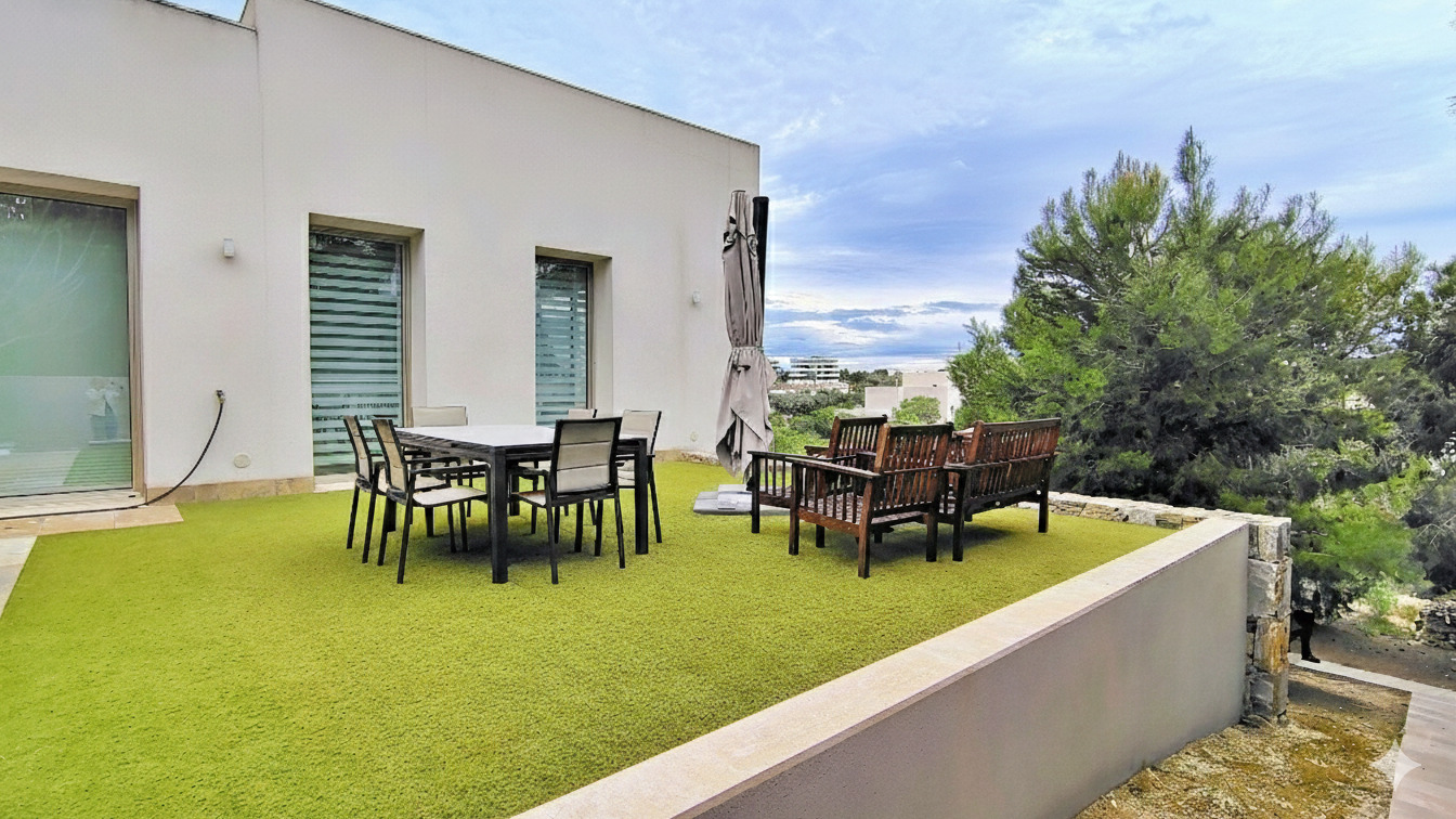 La villa cuenta con cuatro amplios dormitorios y tres baños, donde cada espacio ha sido concebido para maximizar la comodidad y la privacidad, ofreciendo un total de 200 m² construidos y 160 m² útiles, además de una parcela de 1400 m² que proporciona un oasis de tranquilidad y espacio exterior para disfrutar al aire libre. Equipado con tecnología domótica y aire acondicionado, este hogar garantiza un ambiente de confort y modernidad, ideal para quienes buscan un equilibrio entre elegancia y funcionalidad. La disposición de los espacios, junto con la luminosidad natural que inunda cada habitación, crea una atmósfera acogedora y sofisticada que hará las delicias de sus residentes.