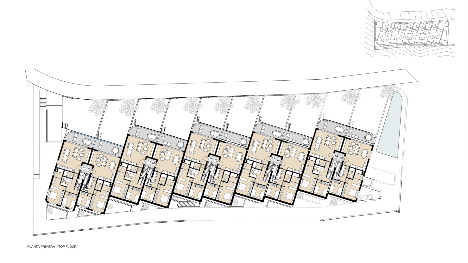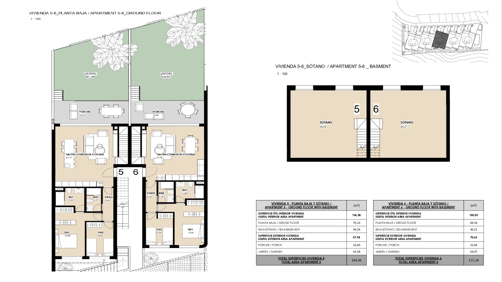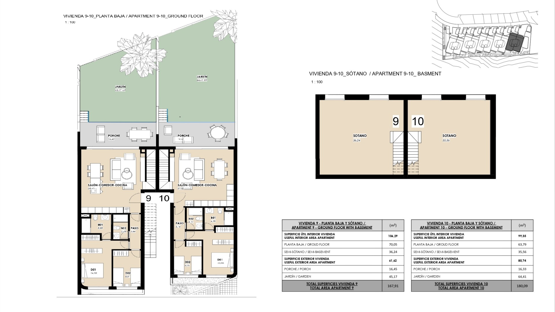 La promoción ofrece diferentes tipologías pensadas para responder a distintas necesidades. Los apartamentos en planta baja disponen de un gran jardín privado con vistas al mar y espacio suficiente para la posible instalación de una piscina privada, además de un semisótano que permite añadir dormitorios adicionales o zonas polivalentes. Los áticos destacan por su amplio balcón, solárium privado y espectaculares vistas al mar, ideales para disfrutar del sol y del estilo de vida mediterráneo con total privacidad.