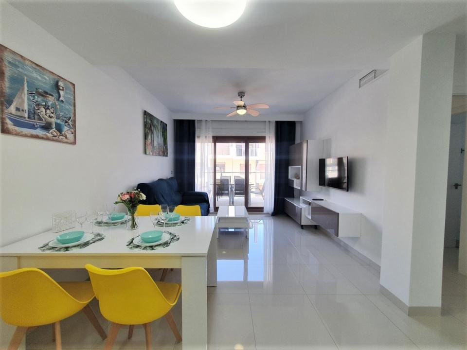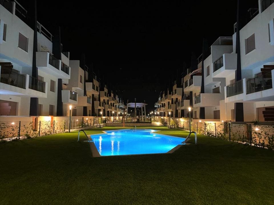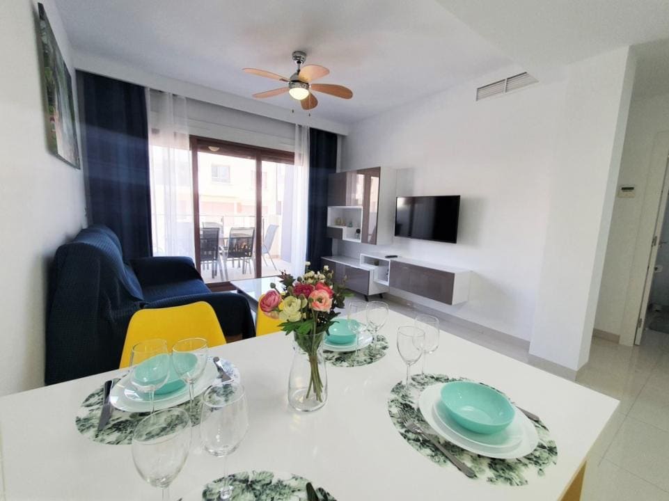 Excelente apartamento con una gran terraza se encuentra en el complejo residencial Bianca Beach, que se encuentra en el pequeño y acogedor pueblo de Torre de La Horadada, en el sur de la provincia de Alicante, en la costa mediterránea de España.