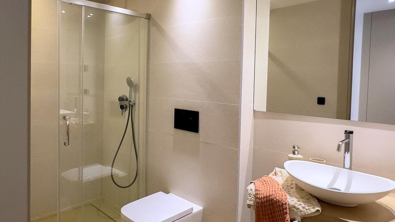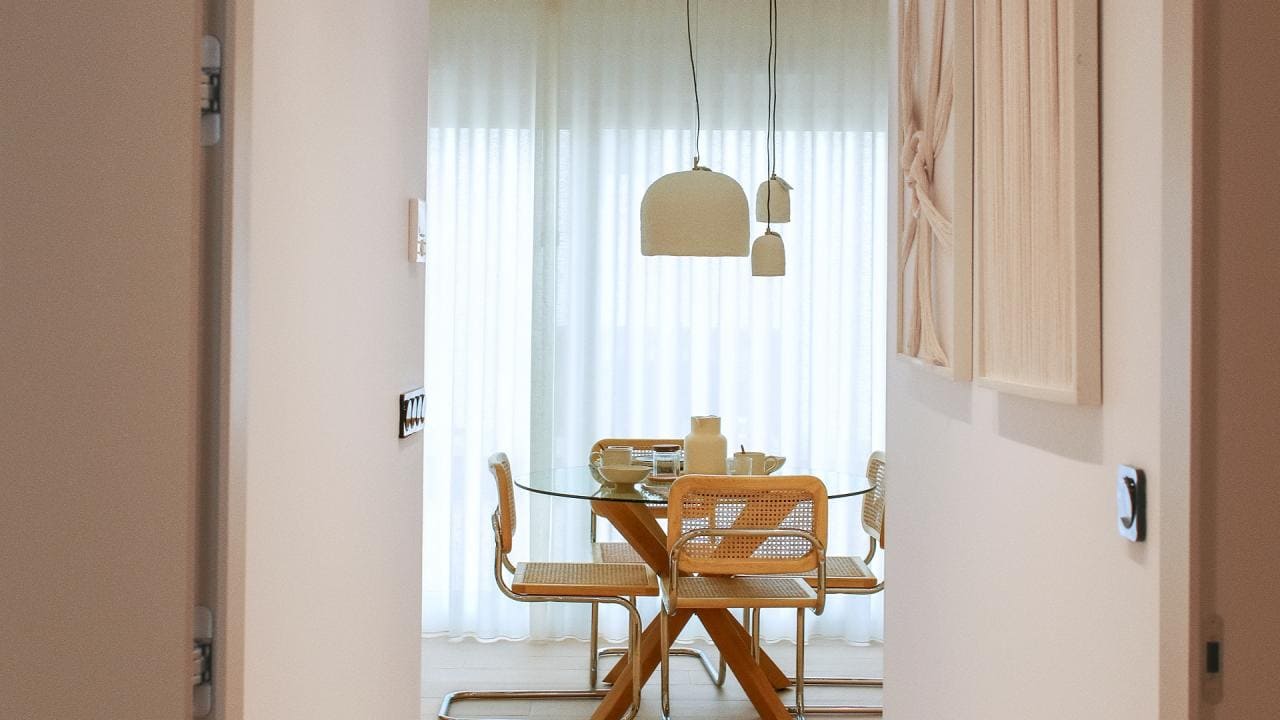 La vivienda cuenta con 3 dormitorios y 2 baños, uno de ellos en suite, ambos equipados con lavabo, espejo, mampara completa en duchas y suelo radiante para un mayor confort. El salón-comedor está conectado a una espectacular cocina de estilo moderno, diseñada con materiales de primera calidad y equipada con todos los electrodomésticos esenciales. Su barra americana abre el espacio al resto de la vivienda, creando una atmósfera amplia y luminosa, ideal para reuniones con familiares y amigos.