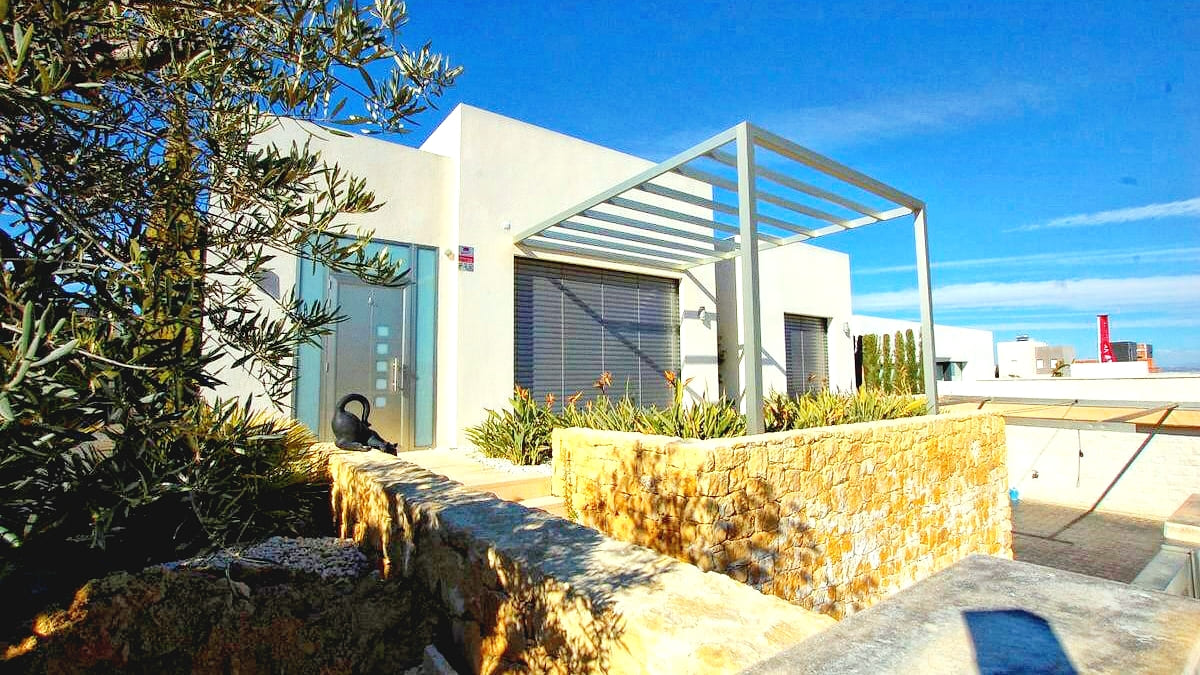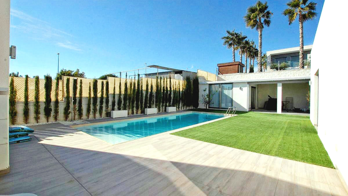 La villa está situada en una parcela de 600 m², ofreciendo un amplio espacio exterior con una piscina privada, perfecta para disfrutar del sol y del clima mediterráneo. Construida en el año 2016, esta propiedad se presenta en excelentes condiciones, lista para entrar a vivir y disfrutar de un estilo de vida lujoso y confortable.