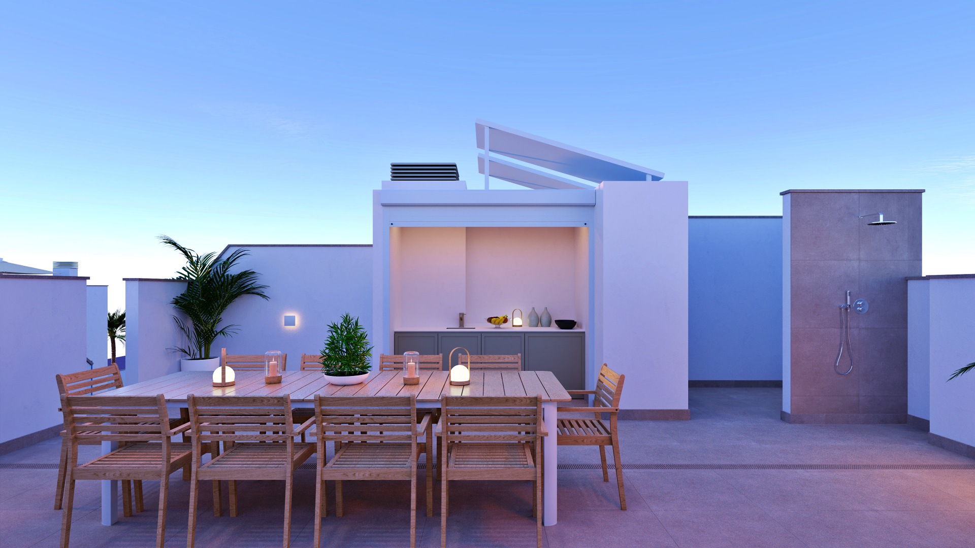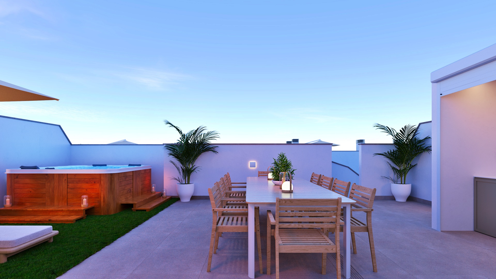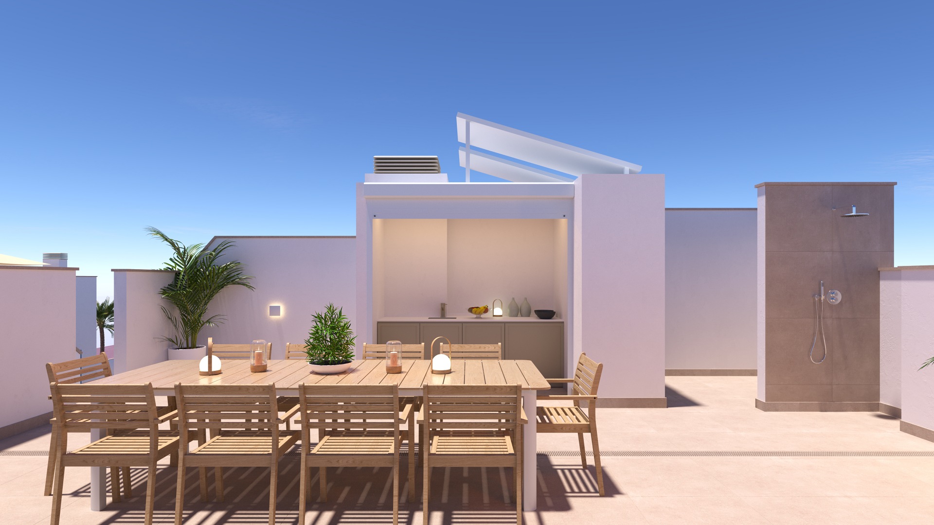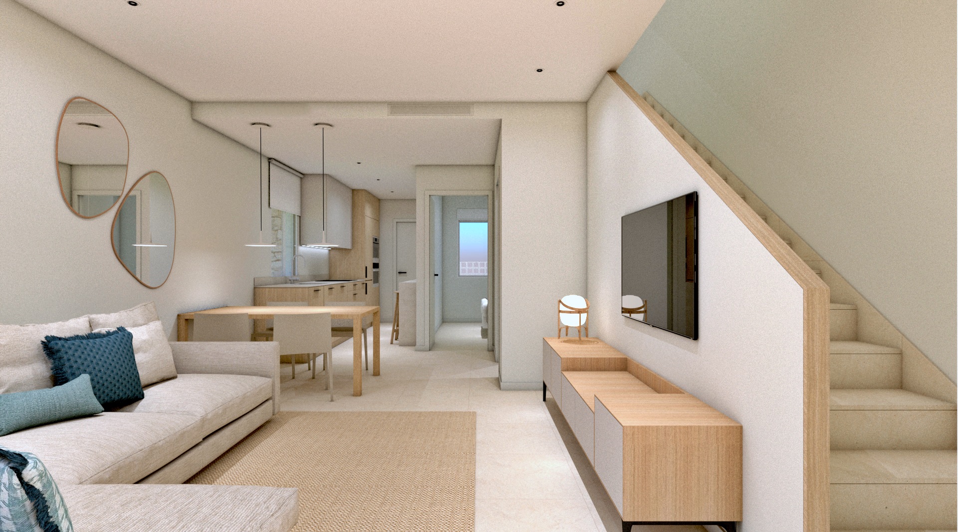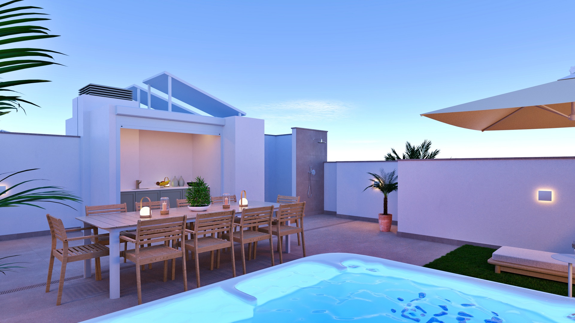 La villa dispone de 96 m² de superficie interior y 137 m² construidos incluyendo terrazas, con una distribución funcional y luminosa. Se sitúa sobre una parcela privada de 138 m², ideal para disfrutar del exterior, organizar comidas al aire libre o crear una zona chill out privada bajo el sol mediterráneo. El diseño arquitectónico es contemporáneo, con líneas limpias y grandes ventanales que conectan los espacios interiores con las terrazas. El salón es amplio y luminoso, las habitaciones ofrecen comodidad y privacidad, y los baños presentan un diseño actual con materiales de calidad. La vivienda está equipada con aerotermia para el agua caliente sanitaria y preinstalación de aire acondicionado por conductos, garantizando confort durante todo el año.
