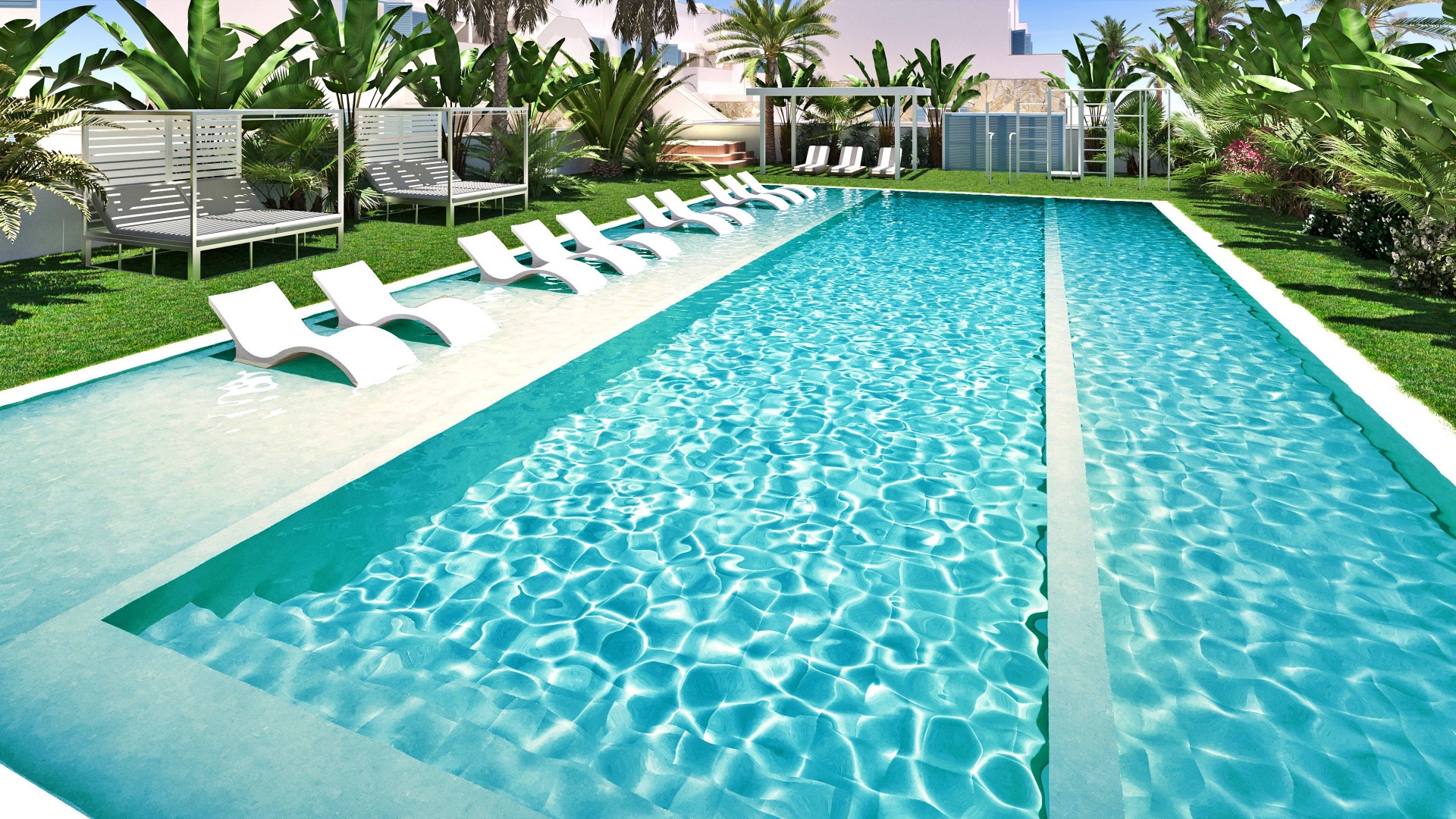 El residencial ofrece un entorno tranquilo y seguro, con zonas comunes ajardinadas, piscina comunitaria y áreas de descanso, creando una atmósfera cómoda y agradable para residentes de todas las edades. Este tipo de urbanización es especialmente valorado tanto por familias como por compradores que buscan una propiedad con alto atractivo para el alquiler vacacional.