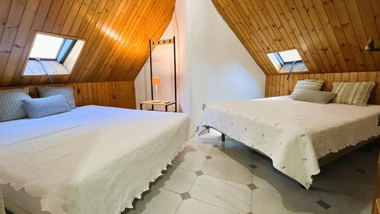 En la planta superior se distribuyen los otros dormitorios, todos bien iluminados y espaciosos, ideales tanto para una gran familia como para quienes buscan una propiedad para alquiler vacacional con alta rentabilidad. En la planta baja, el chalet ofrece un amplio garaje con capacidad para varios vehículos y zona de lavadero, añadiendo funcionalidad y comodidad al conjunto.