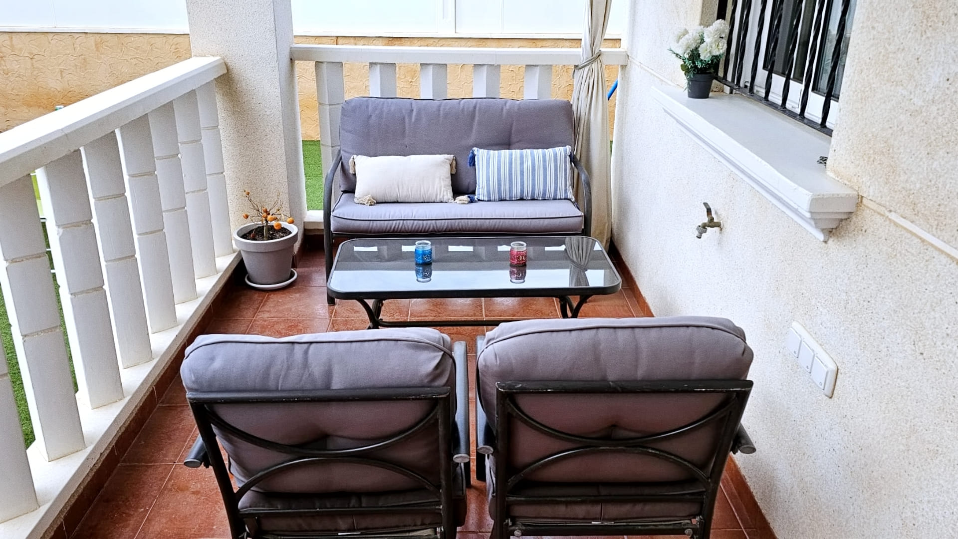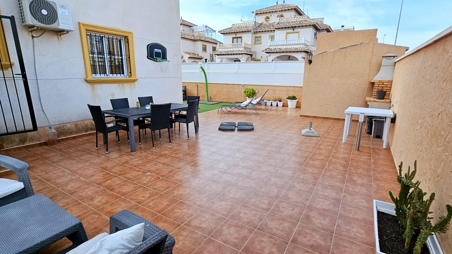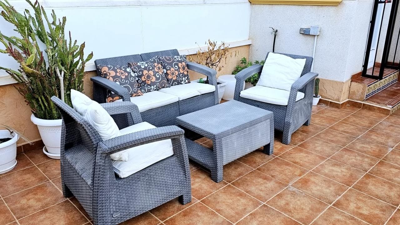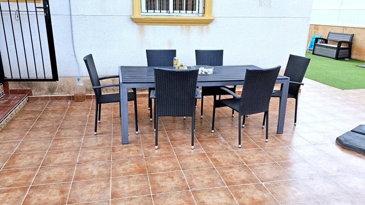 La propiedad también tiene mosquiteras en todas las ventanas, garantizando un ambiente agradable en todo momento. Ubicada en la tranquila zona de Lomas de Cabo Roig, la villa cuenta con acceso directo desde la calle y desde la urbanización, y sus residentes pueden disfrutar de una zona comunitaria con piscina y jardines.
