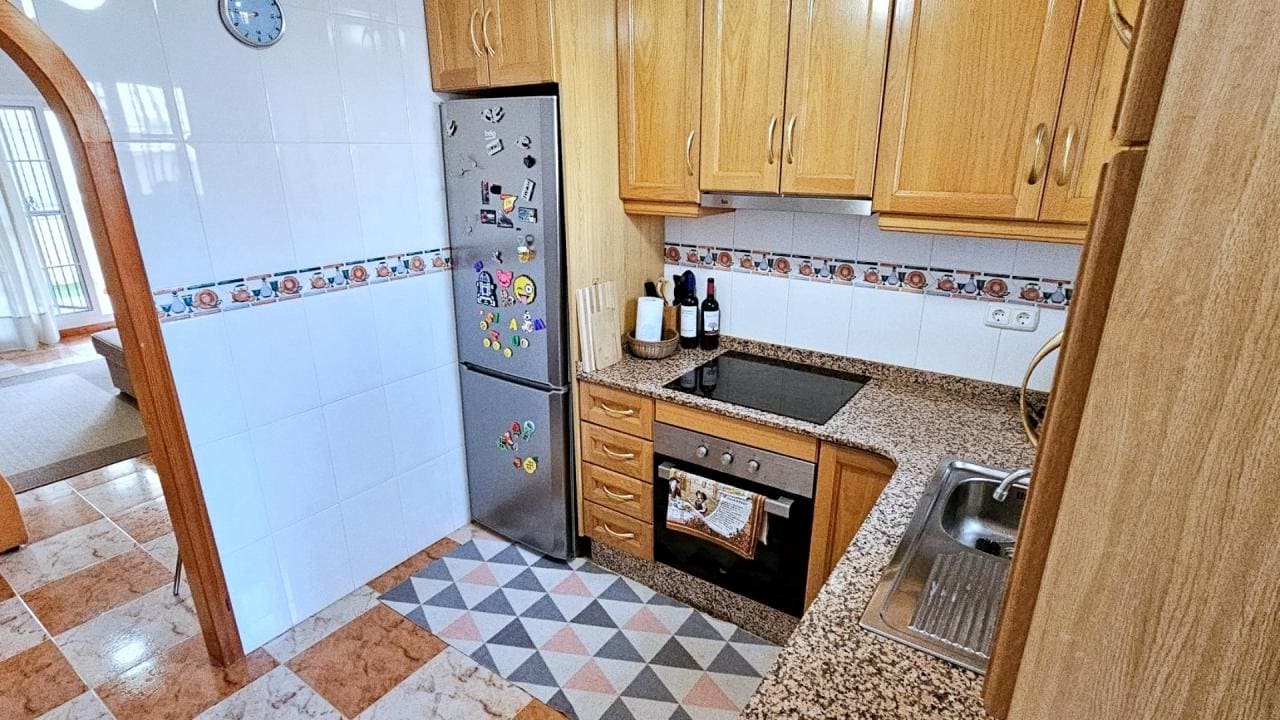 Esta villa en Los Dolses se presenta en un estado impecable, ofreciendo un hogar cómodo y funcional. Con un diseño práctico, la vivienda se distribuye en un amplio salón, una cocina independiente completamente equipada, un lavadero, dos habitaciones dobles con armarios empotrados y un baño completo. Las habitaciones son espaciosas y cuentan con mucha luz natural, lo que aporta una sensación de amplitud y confort.