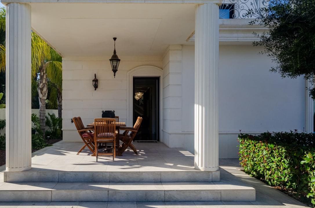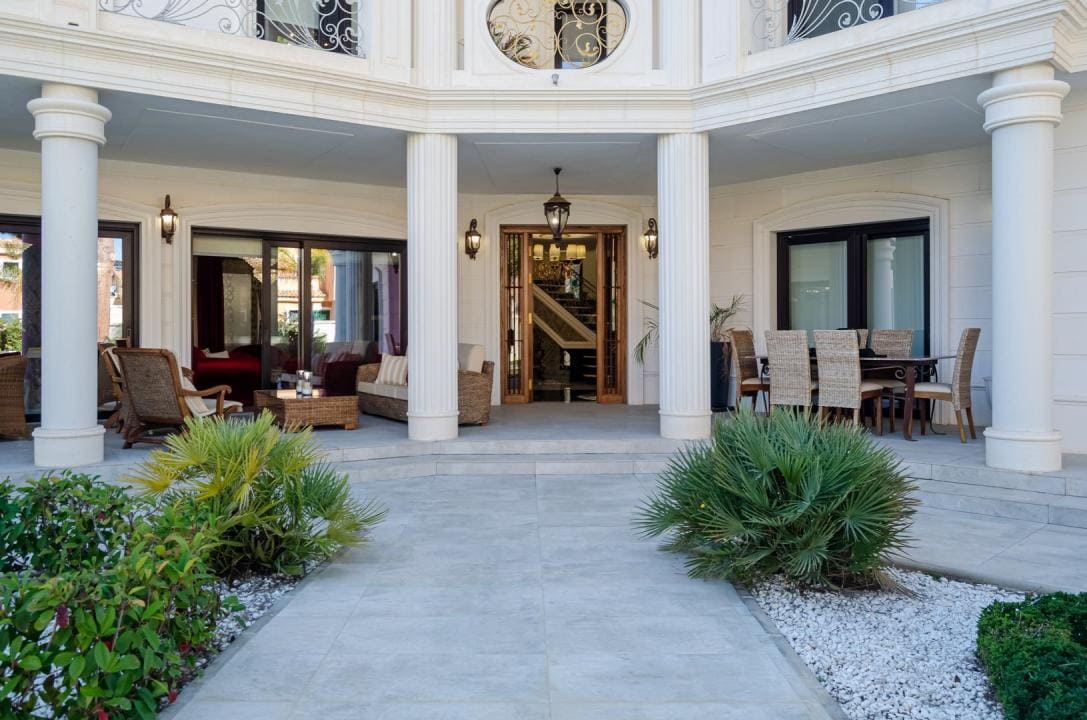 Impresionante villa moderna de estilo clásico, situada a 500 metros de la playa de arena, en el corazón de la famosa urbanización Dehesa de Campoamor, un precioso pueblo al sur de la provincia de Alicante.