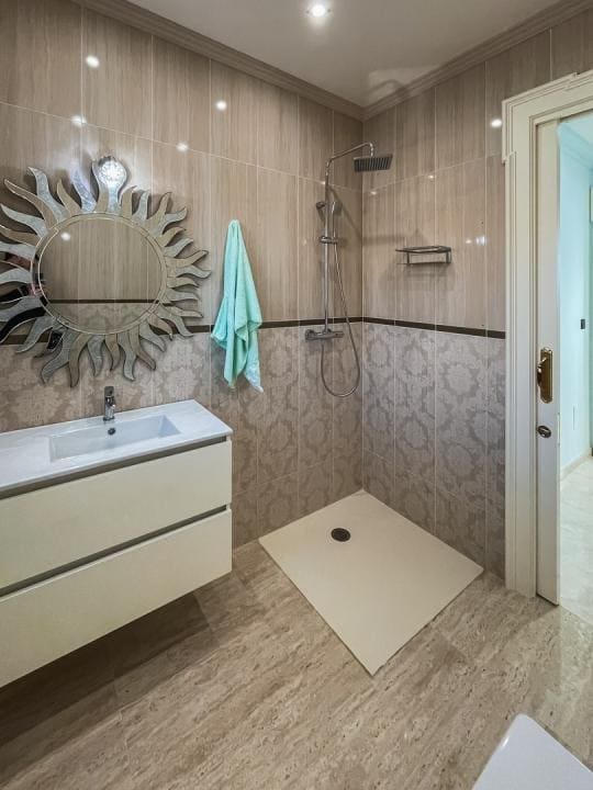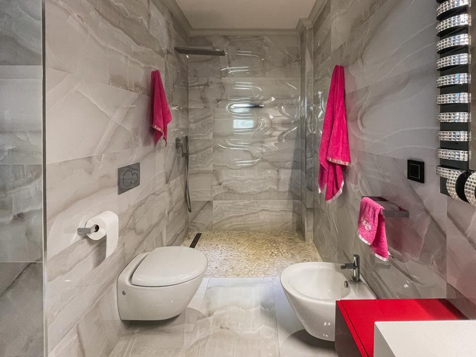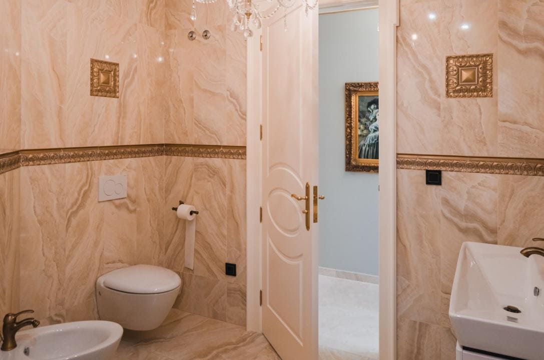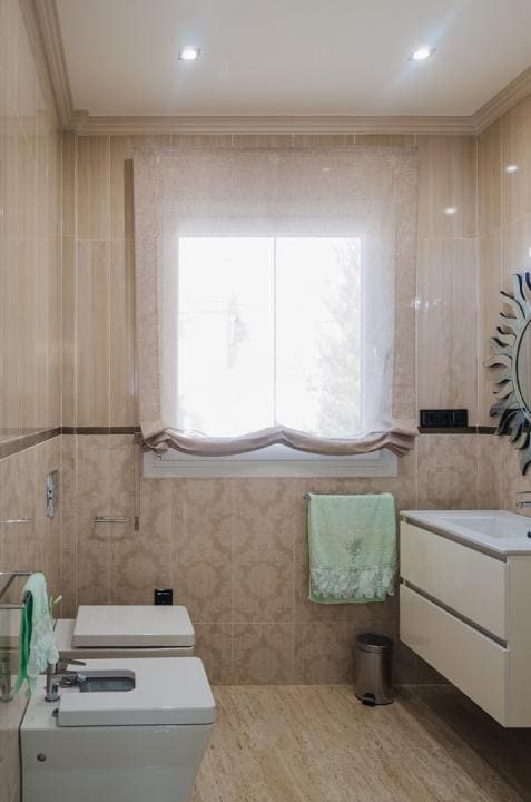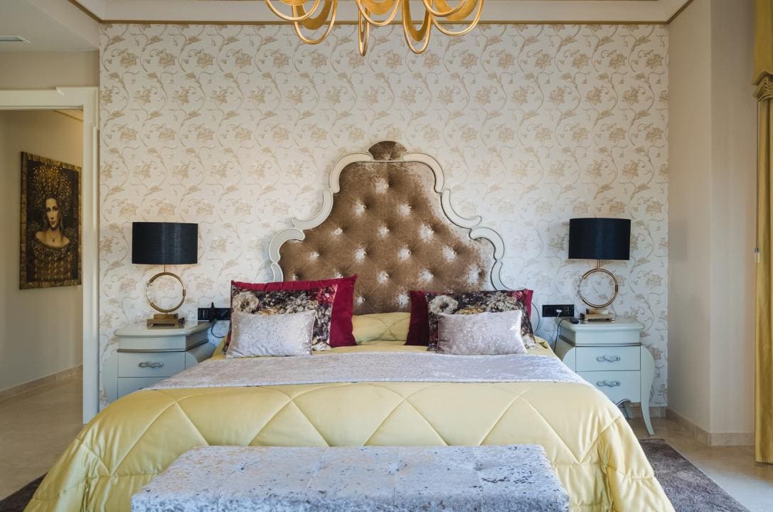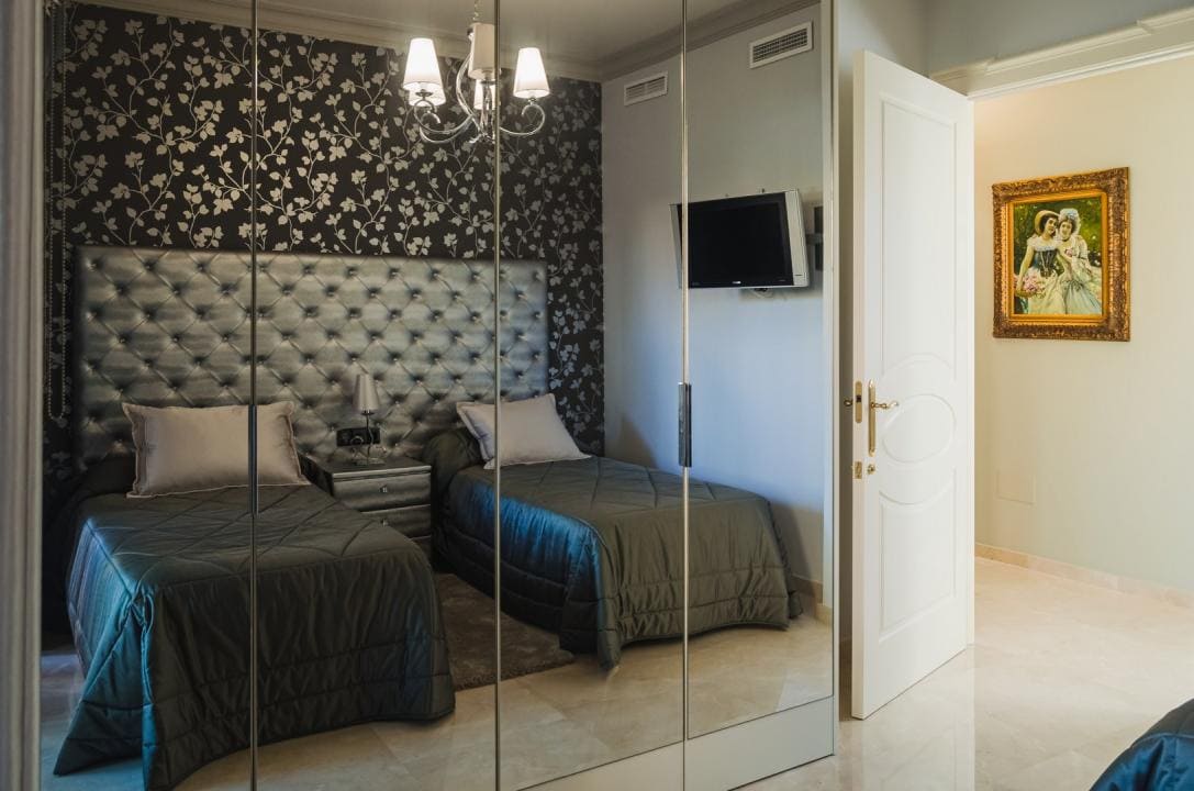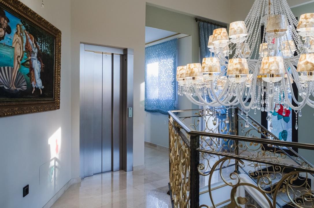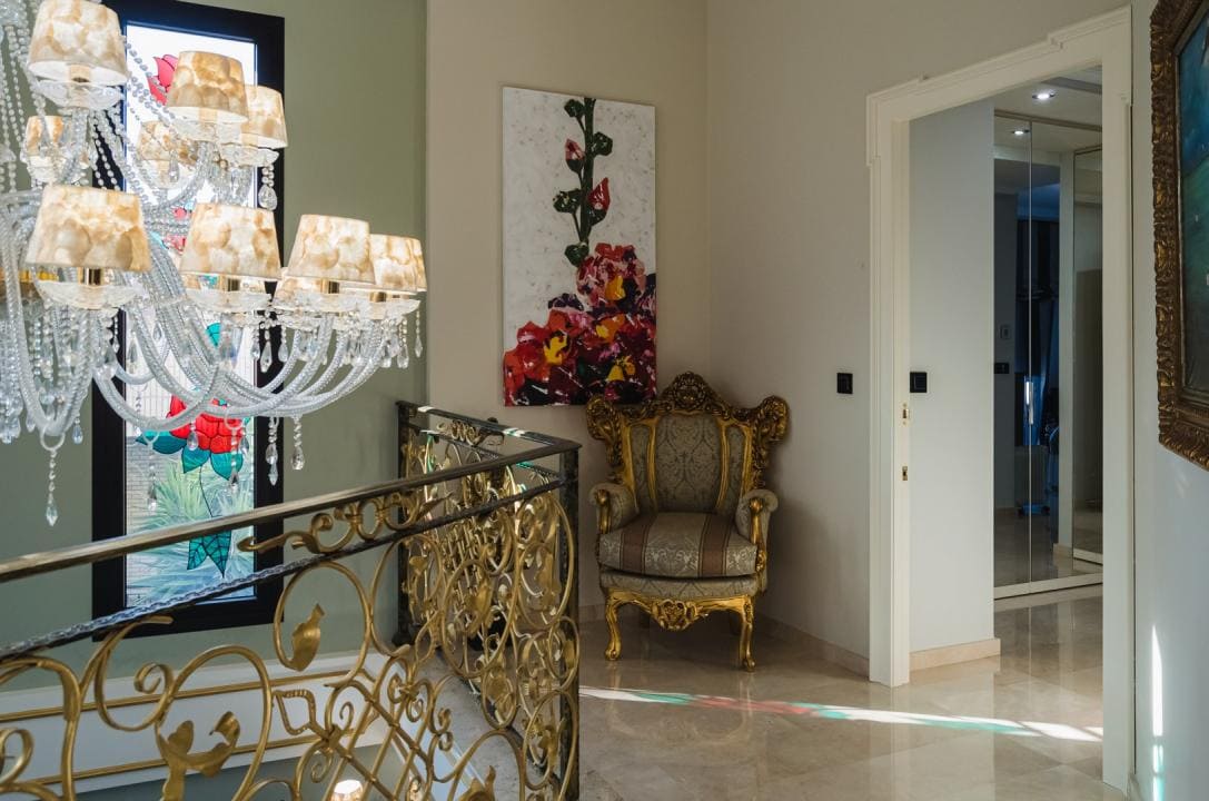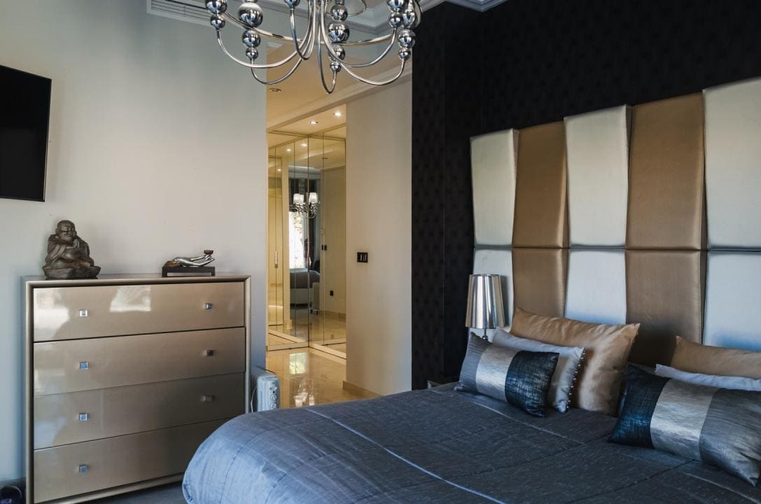 A la planta primera de la casa se accede por una hermosa escalera o ascensor, donde se encuentran los dormitorios principales. En el parte izquierda se encuentra el dormitorio principal de la casa con un gran armario y un impresionante baño, aquí está otro dormitorio más, también con armario y un baño, y en el parte izquierda hay otro gran dormitorio y por supuesto tiene su propio guardarropa y baño. Desde cada una de las habitaciones se accede a una hermosa terraza donde podrá relajarse disfrutando de una hermosa vista al jardín, la piscina y los alrededores hacia el mar.