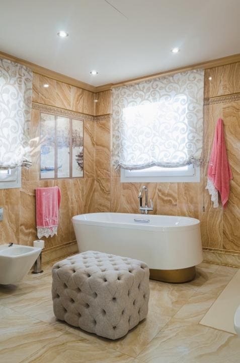 En la construcción de la casa se utilizaron materiales de alta calidad, así como ventanas y puertas, muebles, etc. y los colores vibrantes se combinan cuidadosamente para crear un hogar cómodo y único. La villa se vende completamente amueblada y equipada.